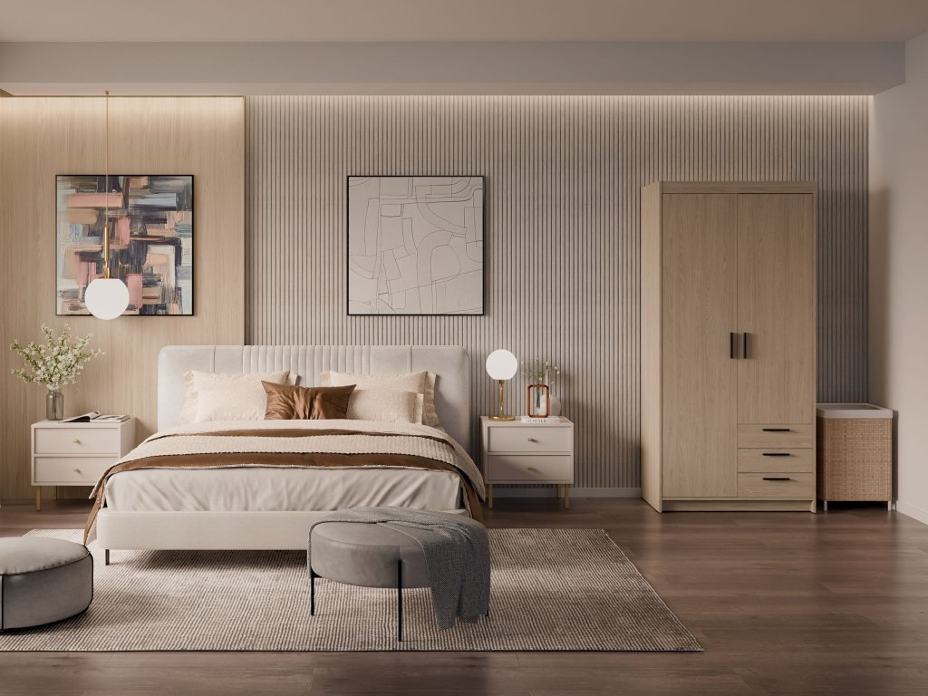 Prírodná skriňa Elenas 2D v prevedení dub olejovaný vnesie do vašej spálne teplo prírodného dreva a pocit harmónie. Jemná kresba dreva v kombinácii s jednoduchými líniami vytvára nadčasový dizajn, ktorý sa hodí do moderných aj klasickejších interiérov. Tento dekor pôsobí príjemne a zároveň elegantne, vďaka čomu sa skriňa stane prirodzenou súčasťou vášho domova.