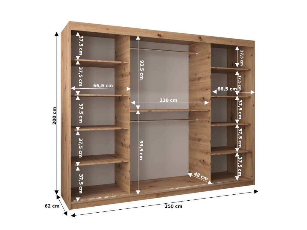 Presná šírka skrine: | 250 cm |