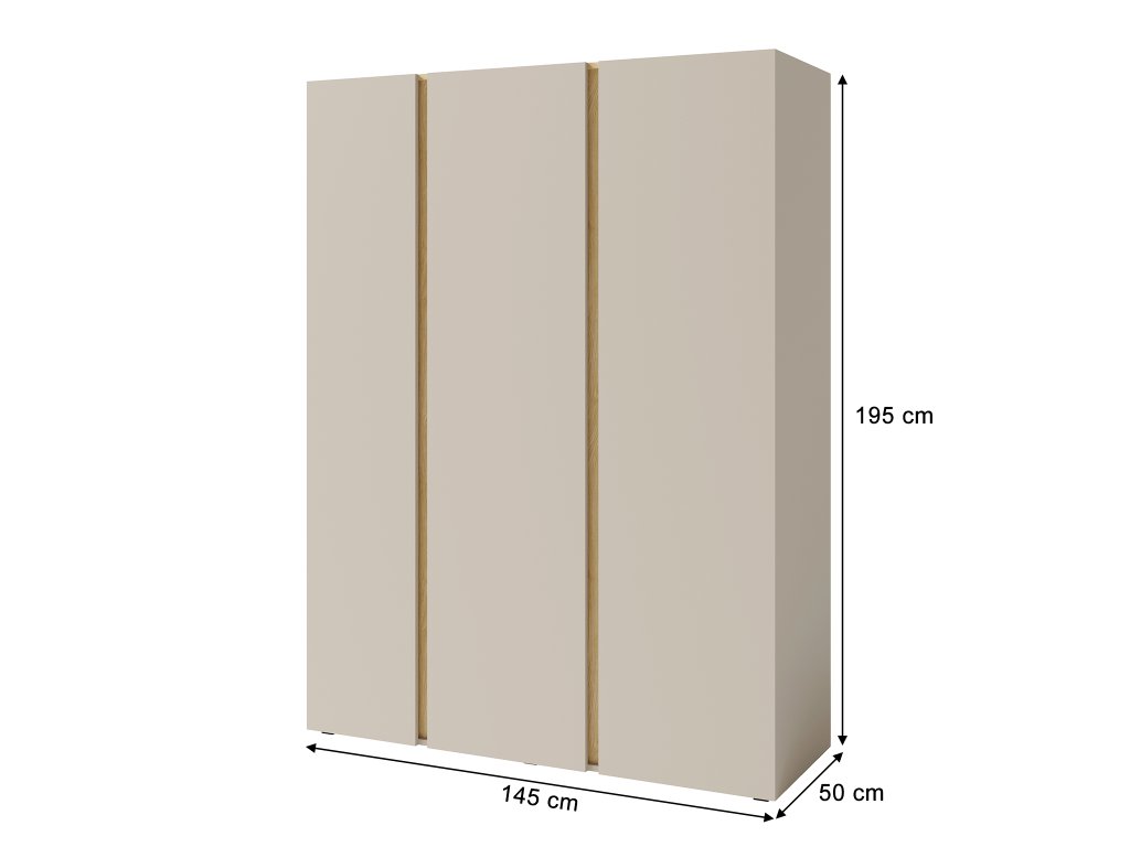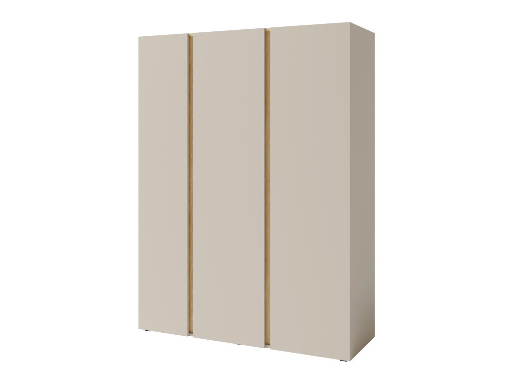 Moderná trojdverová skriňa LUCA s veľkým úložným priestorom v béžovej farbe sa výborne hodí do detskej izby alebo spálne. Skriňa ponúka komplexný úložný priestor, ktorý je pri výbere novej skrine veľmi dôležitý. V ľavej časti šatníkovej skrine sa nachádzajú štyri police. V strednej a v pravej časti skrine nájdete po dve poličky a vešiakovú tyč. Šatníková skriňa je vyrobená z kvalitnej laminovanej dosky s hrúbkou 16 mm. Hrany sú zakončené odolnou ABS dyhou. Dvierka majú bezúchytové otváranie. K tomuto typu nábytku môžete zvoliť doplnky v akejkoľvek farbe.