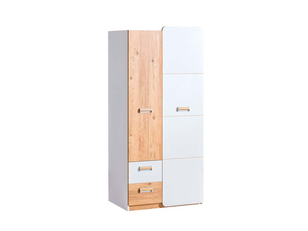 Šatníková skriňa ponúka dostatok úložného priestoru na oblečenie. Skriňa je na jednej strane vybavená vrchnou policou a vešiakovou tyčou na šaty. Na strane druhej sa nachádzajú dve police a dve zásuvky.