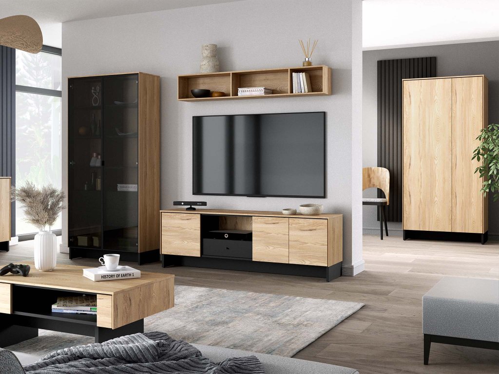 Kolekcia Nomad bude dokonalým riešením pre moderné a štýlové zariadenie vášho interiéru. Kolekcia obsahuje tri rôzne vitríny, konferenčný stolík, komodu, poličku na stenu, skriňu a TV stolík. Farba v kombinácii čiernej s farbou jaseňu dodáva nábytku sofistikovaný a čistý vzhľad, ktorý sa ľahko prispôsobí rôznym štýlom interiérov. Praktické bezúchytkové otváranie pomocou mechanizmu push-to-open a plastové nožičky zaisťujú nielen funkčnosť, ale aj moderný vzhľad. Súčasťou nábytku nie je zabudované LED osvetlenie a rovnako nie je zahrnuté ani v cene nábytku.