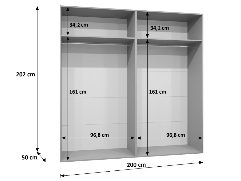 | Presná šírka skrine: | 200 cm |