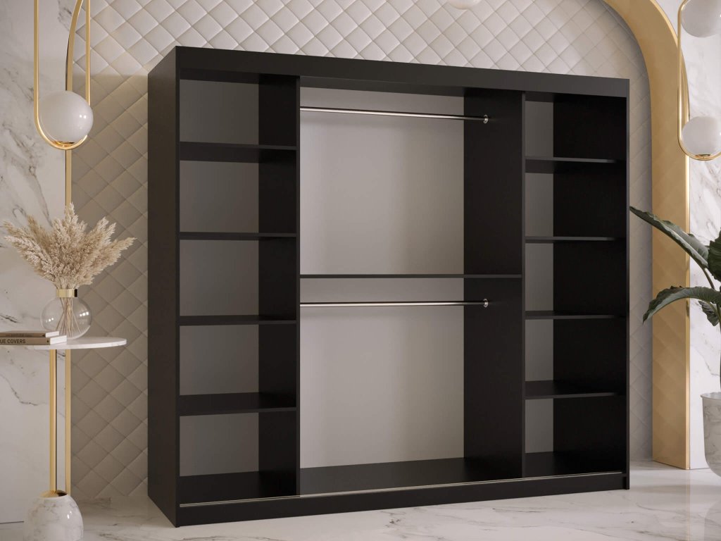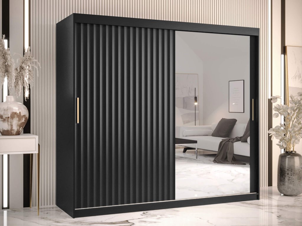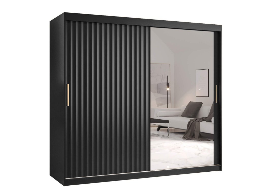Šatníková skriňa so zrkadlom Riflo Wave II 180/200 - čierna