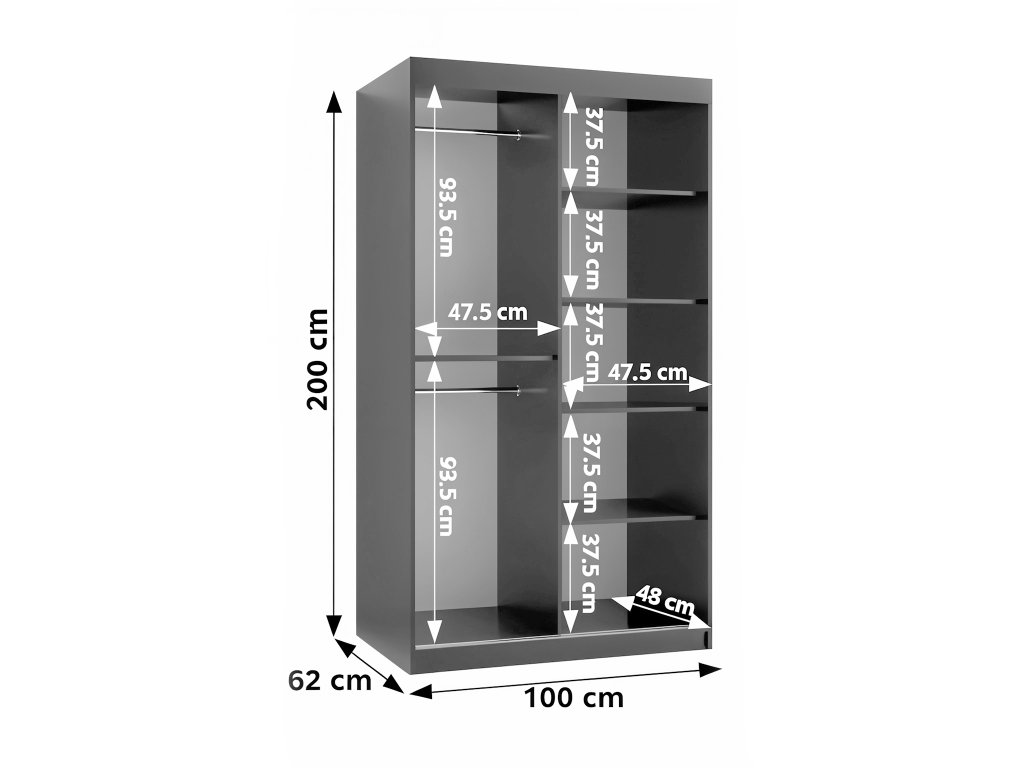 Táto skriňa s policami ponúka ideálny pomer medzi funkčnosťou a dizajnom. Na jednej strane sa nachádzajú štyri priestranné police, na druhej dve kovové tyče na zavesenie oblečenia a polica na doplnky či bielizeň. Hrany sú ošetrené PVC dyhou s hrúbkou 0,5 mm, ktorá chráni nábytok pred poškodením a zvyšuje jeho životnosť. Zadná časť skrine je vyrobená z pevnej HDF dosky, čo zaručuje stabilitu konštrukcie. Šatníková skriňa Rubino T2 sa skvele hodí do spálne, predsiene alebo šatne a vďaka svojmu praktickému riešeniu sa stane neodmysliteľnou súčasťou vášho domova.