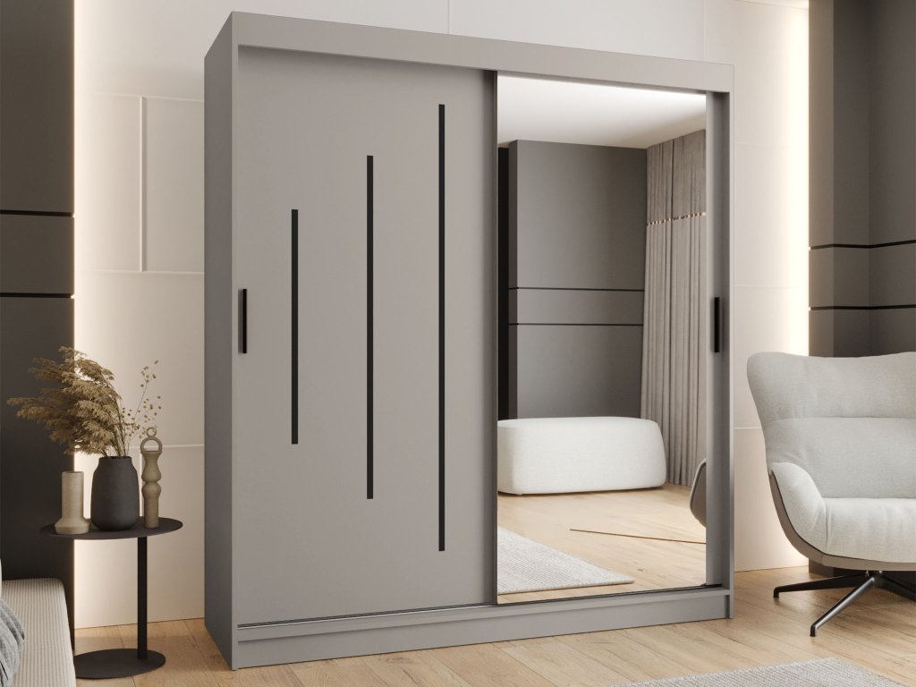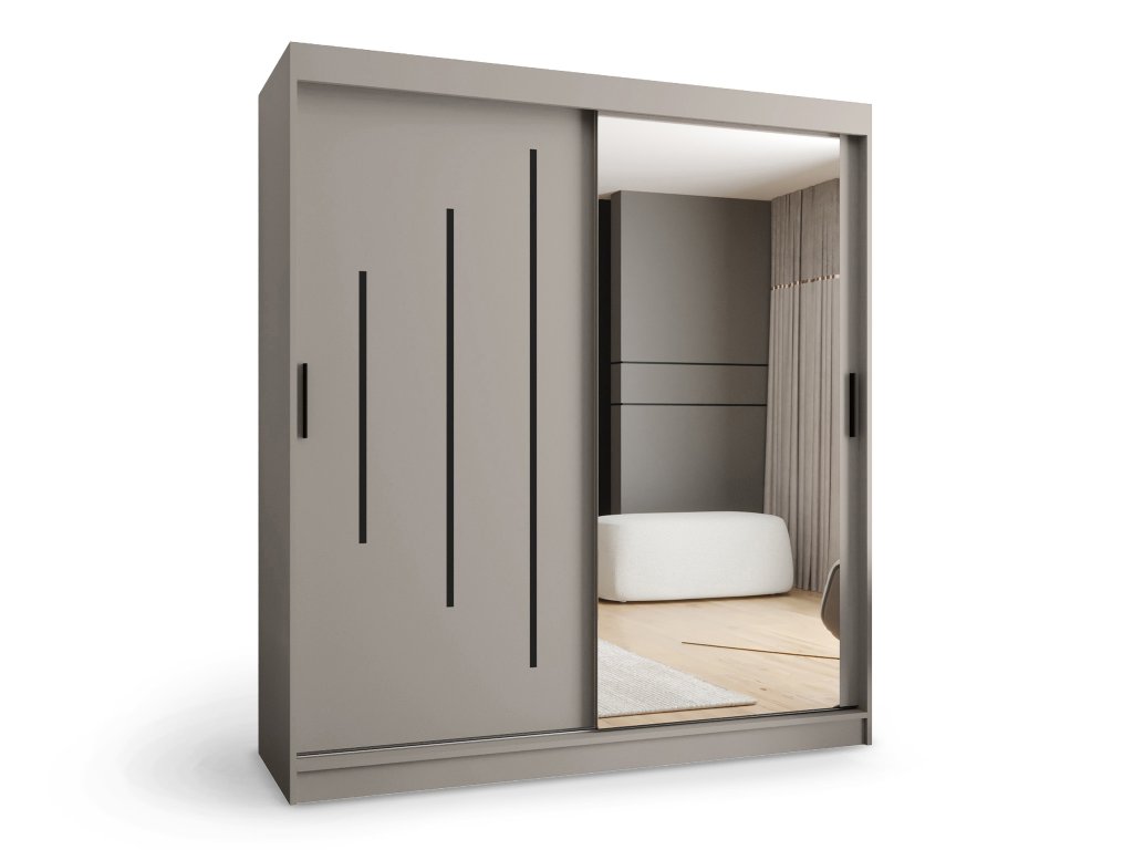 Ak hľadáte elegantné a úsporné riešenie na odkladanie oblečenia, bytových doplnkov a podobne, šatníková skriňa Rubino Y2 je ideálnou voľbou. Vyznačuje sa nadčasovým vzhľadom a kvalitným spracovaním. Povrch tvorí laminátová doska v kašmírovej farbe s matným efektom, ktorý pôsobí jemne a moderne. Posúvne dvere sú nielen praktické, ale aj štýlové. Šetria priestor a ľahko sa ovládajú. Jedna časť dverí je doplnená o zrkadlo, ktoré presvetlí a opticky zväčší miestnosť. Celkový vzhľad dopĺňajú čierne detaily a plastové rúčky, ktoré zvýrazňujú moderný charakter skrine. Vďaka spoľahlivému systému BIMAK s hliníkovými lištami sa dvere pohybujú ticho a plynulo. Hrany sú ošetrené PVC dyhou, čo zvyšuje odolnosť voči poškodeniu a predlžuje životnosť nábytku.