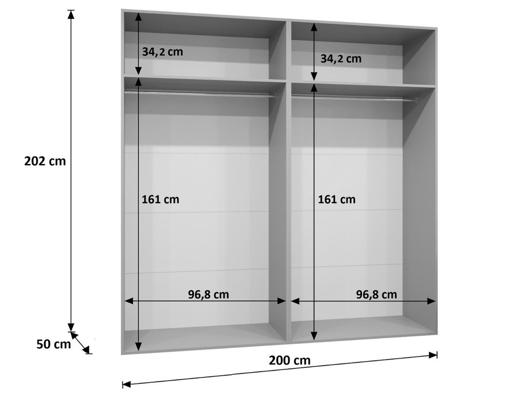 | Presná šírka skrine: | 200 cm |