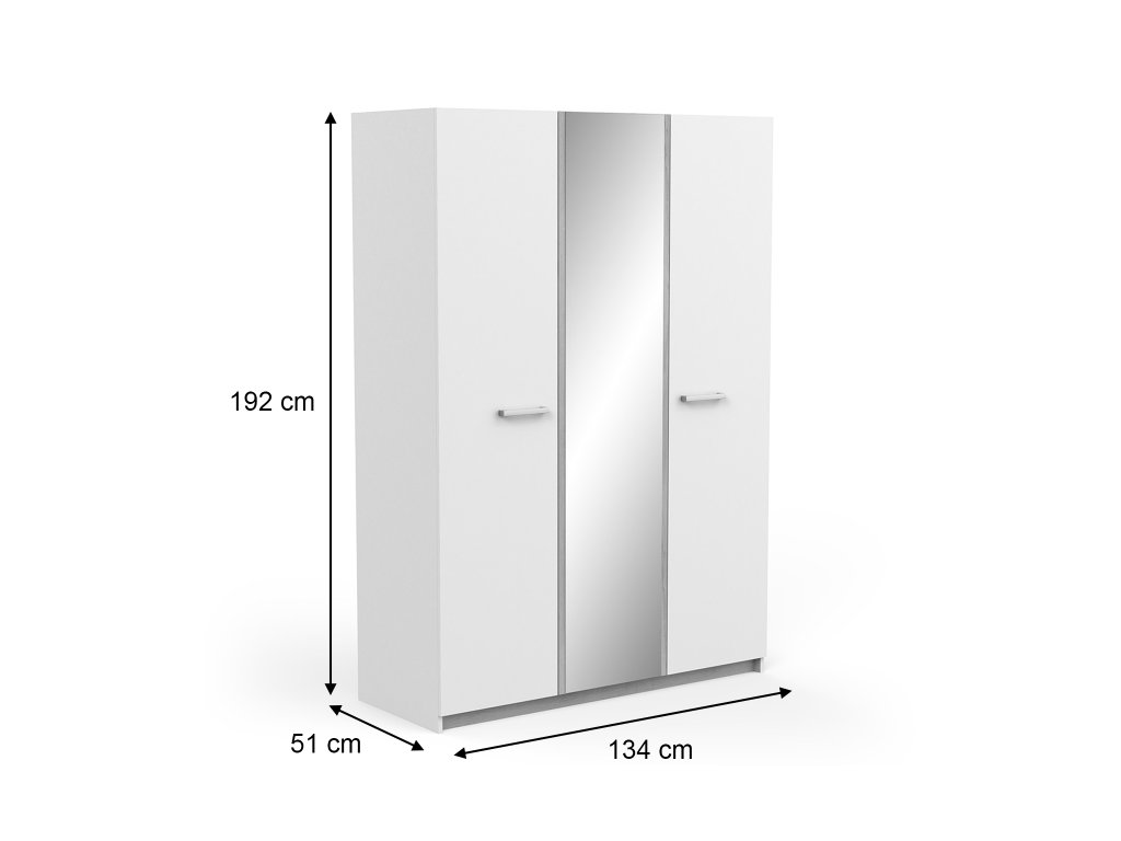 Šatníková skriňa so zrkadlom 134x192x51 Watson - biela