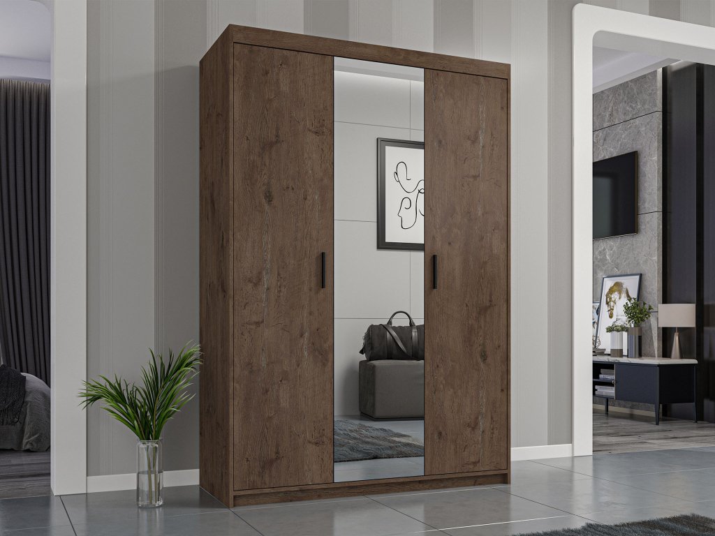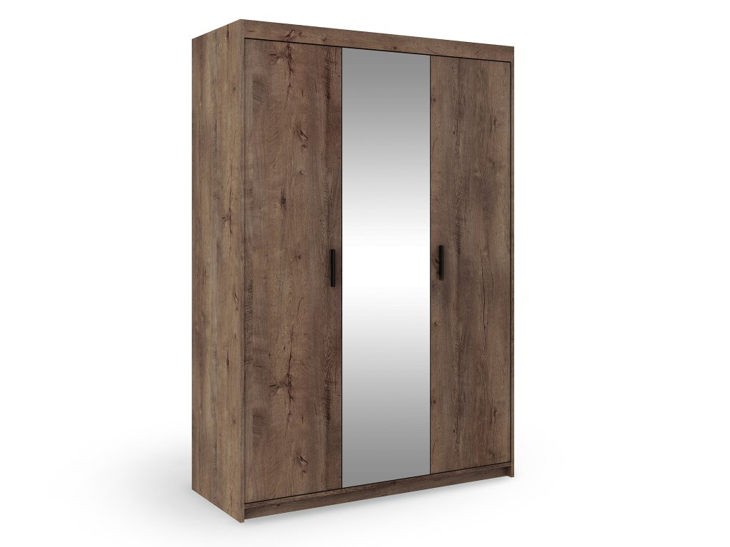 Prírodný odtieň dub lefkas dodáva skrini nadčasový vzhľad, ktorý sa ľahko zladí s rôznymi interiérmi. Zrkadlo na prednej strane opticky zväčší miestnosť a prinesie do nej viac svetla. Kvalitné spracovanie a odolný materiál zabezpečujú dlhú životnosť. Plastové úchytky v čiernom prevedení sú praktickým detailom, ktorý uľahčuje manipuláciu s dverami. Môžete ju pokojne umiestniť do spálne, obývačky, chodby či študentnskej izby.