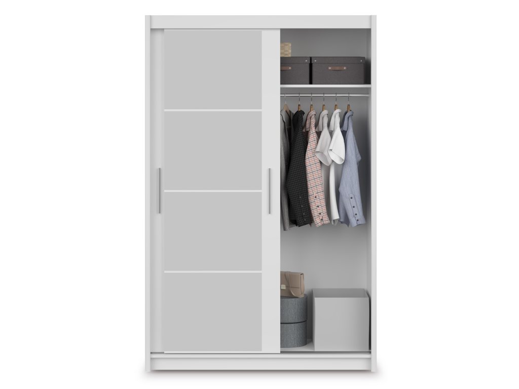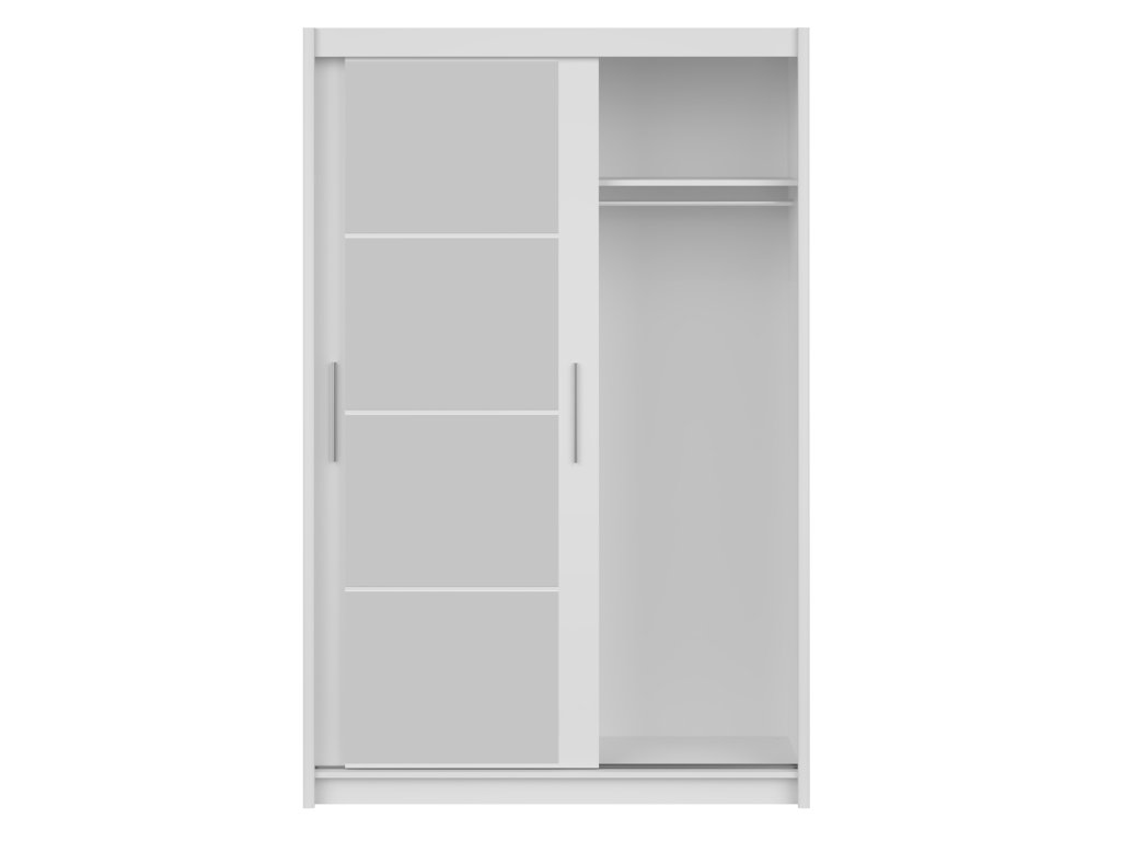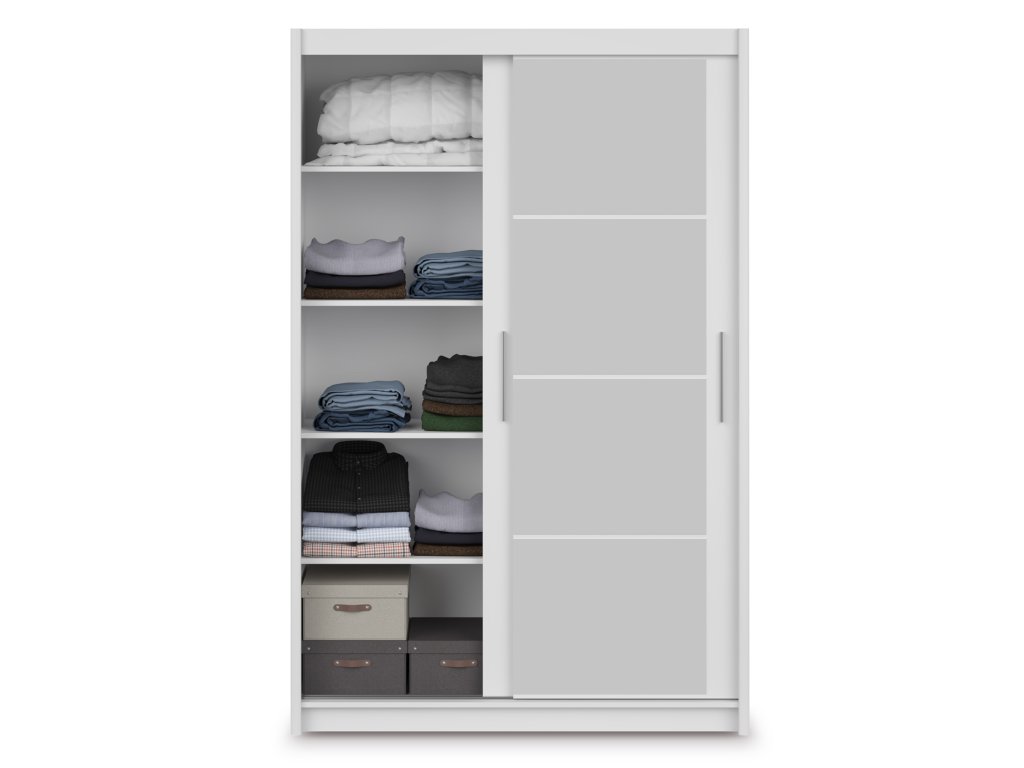 Biela šatníková skriňa Marios v čistom bielom dekore s rozmermi 140 × 215 × 61 cm prináša do vášho interiéru svieži, nadčasový vzhľad a zároveň maximálne praktické riešenie úložného priestoru. Vnútro skrine je rozdelené na dve funkčné časti – na jednej strane sa nachádza vešiaková tyč s hornou policou, ideálna na zavesenie košieľ, šiat, kabátov či sák. Všetko bude usporiadané, ľahko dostupné a bez pokrčenia. Druhá časť skrine obsahuje päť priestranných políc, ktoré poskytujú dostatok miesta na poskladané oblečenie, posteľnú bielizeň, uteráky alebo drobné doplnky. Vďaka tomuto riešeniu bude mať každý kúsok svoje miesto a vaša spálňa alebo predsieň zostane uprataná a prehľadná. Skriňa Marios v bielom prevedení je tak nielen praktickým, ale aj štýlovým doplnkom interiéru, ktorý rozjasní každý priestor.