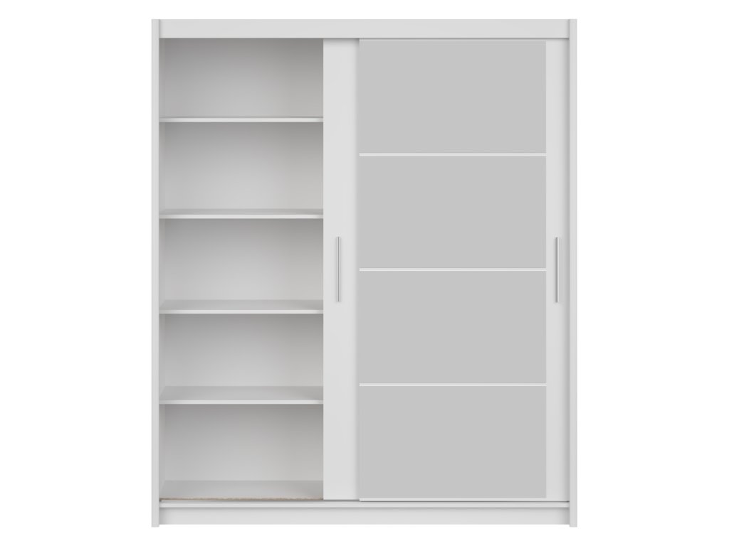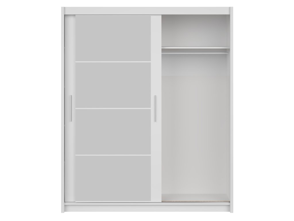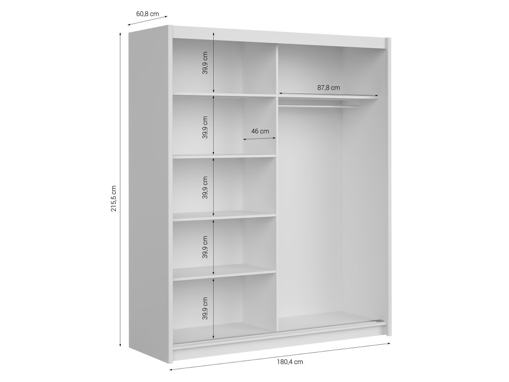 Priestranná šatníková skriňa Marios v elegantnej bielej farbe prináša do interiéru pocit svetla, čistoty a poriadku. Vnútorné usporiadanie je premyslené – jedna strana obsahuje vešiakovú tyč s hornou policou, ideálnu na uloženie košieľ, kabátov, šiat či sák, aby všetko zostalo upratané a vždy po ruke. Druhá strana je vybavená piatimi priestrannými policami, ktoré poskytujú dostatok miesta na poskladané oblečenie, posteľnú bielizeň alebo doplnky. Takto budete mať dokonalý prehľad a miestnosť zostane prehľadná a vzdušná. Tento veľký úložný priestor je ideálny pre každého, kto ocení kombináciu praktickosti a štýlu.