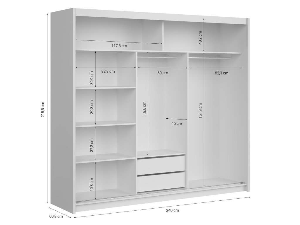 Šatníková skriňa so zrkadlom Marios 240x215x61 - biela