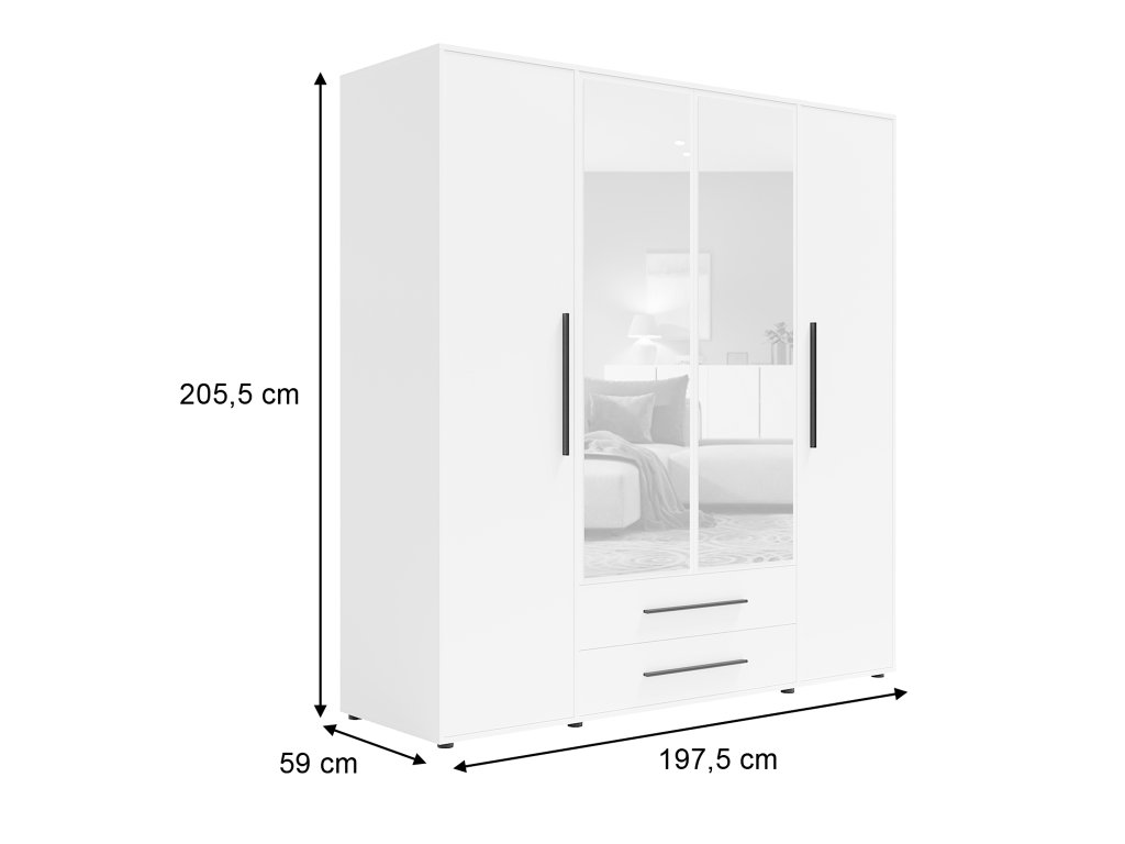 Šatníková skriňa Maxione je elegantným a praktickým doplnkom do spálne alebo predsiene. Stabilitu a štýlový vzhľad jej dodávajú nožičky, pantové dvere so zrkadlom a čierne PVC úchyty. Vnútorné členenie skrine je premyslené – dve zásuvky, päť políc a tyče na zavesenie oblečenia umožňujú efektívne uloženie oblečenia a doplnkov. Každý kúsok má svoje miesto, takže priestor zostáva prehľadný a uprataný.