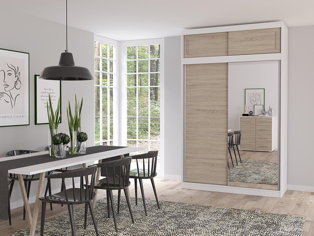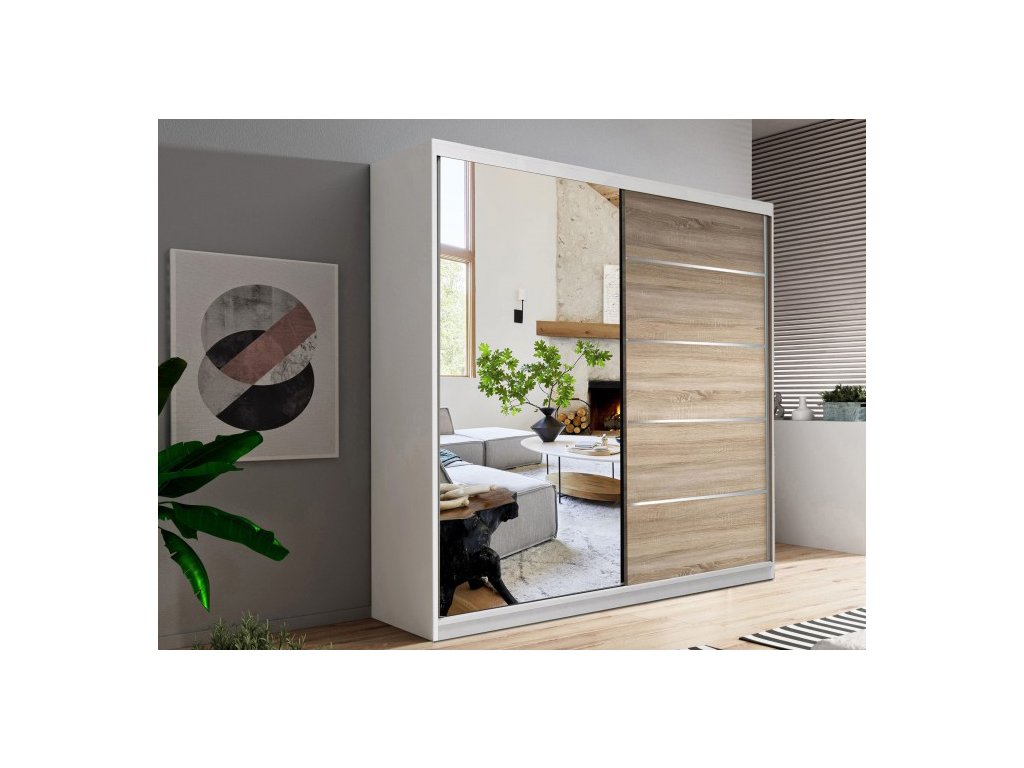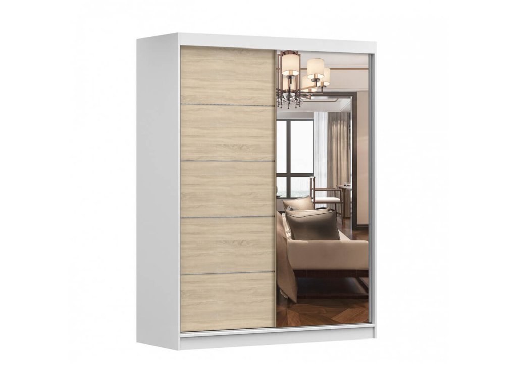 Skriňa so zrkadlom Valery II 150 - biela / dub sonoma