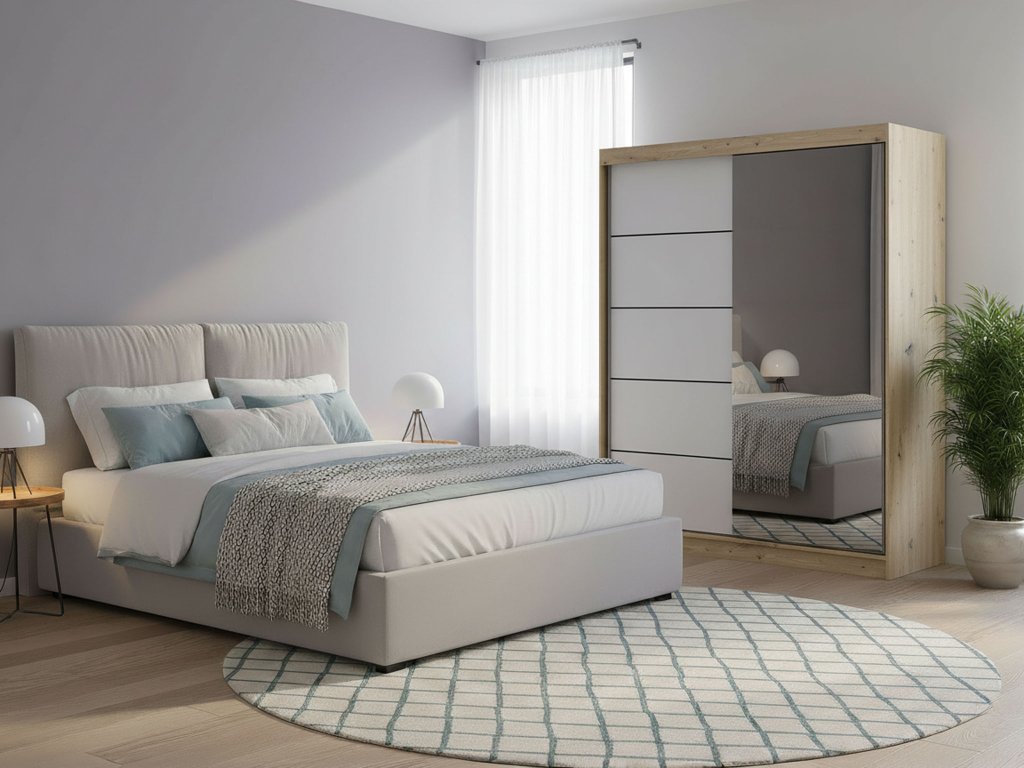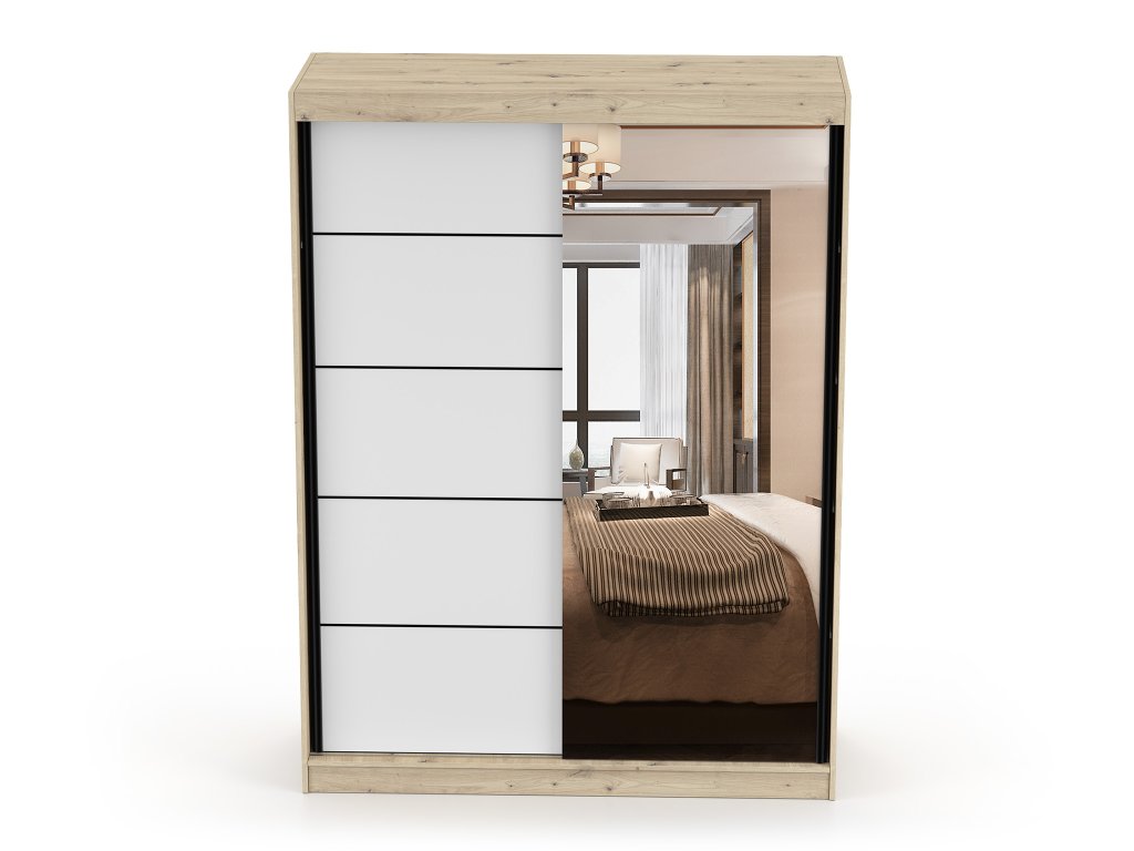 Šatníková skriňa so zrkadlom Valery IV 150x200x61 - dub artisan / biela