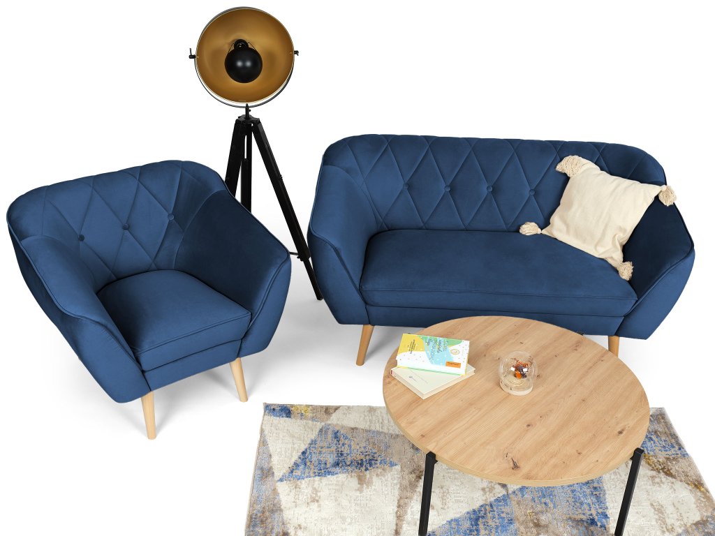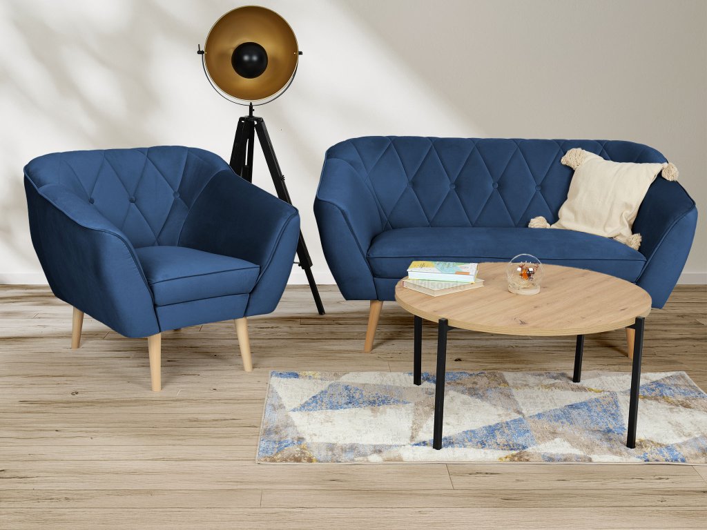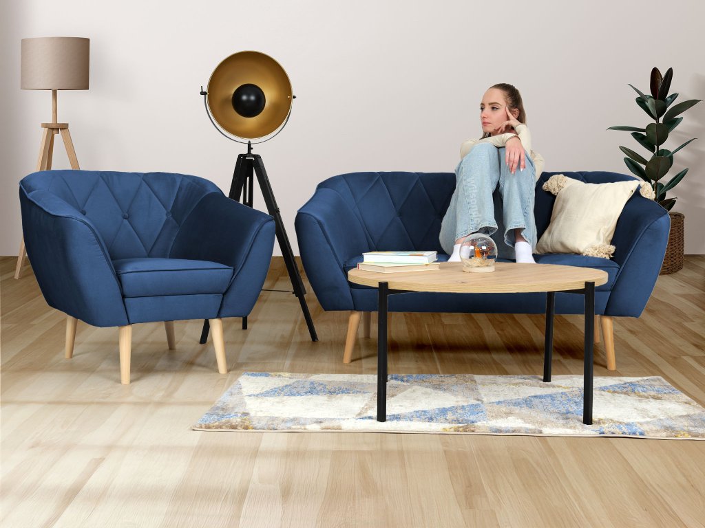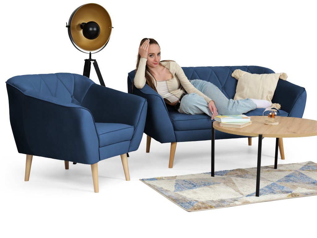 Hľadáte zladený set s dizajnovým vzhľadom a pohodlím, ktoré si zamilujete už pri prvom dosadnutí? Predstavujeme vám sadu Deana – dvojmiestnu pohovku Deana II a kreslo Deana v sofistikovanom tmavomodrom prevedení. Táto svieža, no nadčasová farba dodá priestoru hĺbku a štýl, pričom vynikne v modernom, škandinávskom aj retro interiéri.