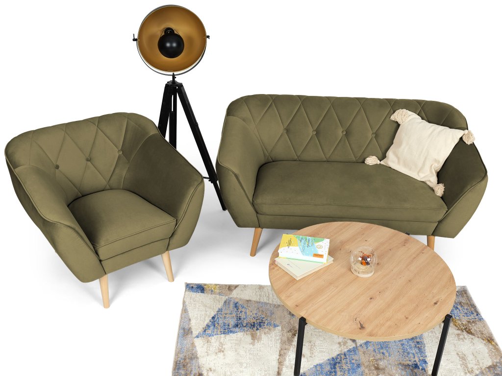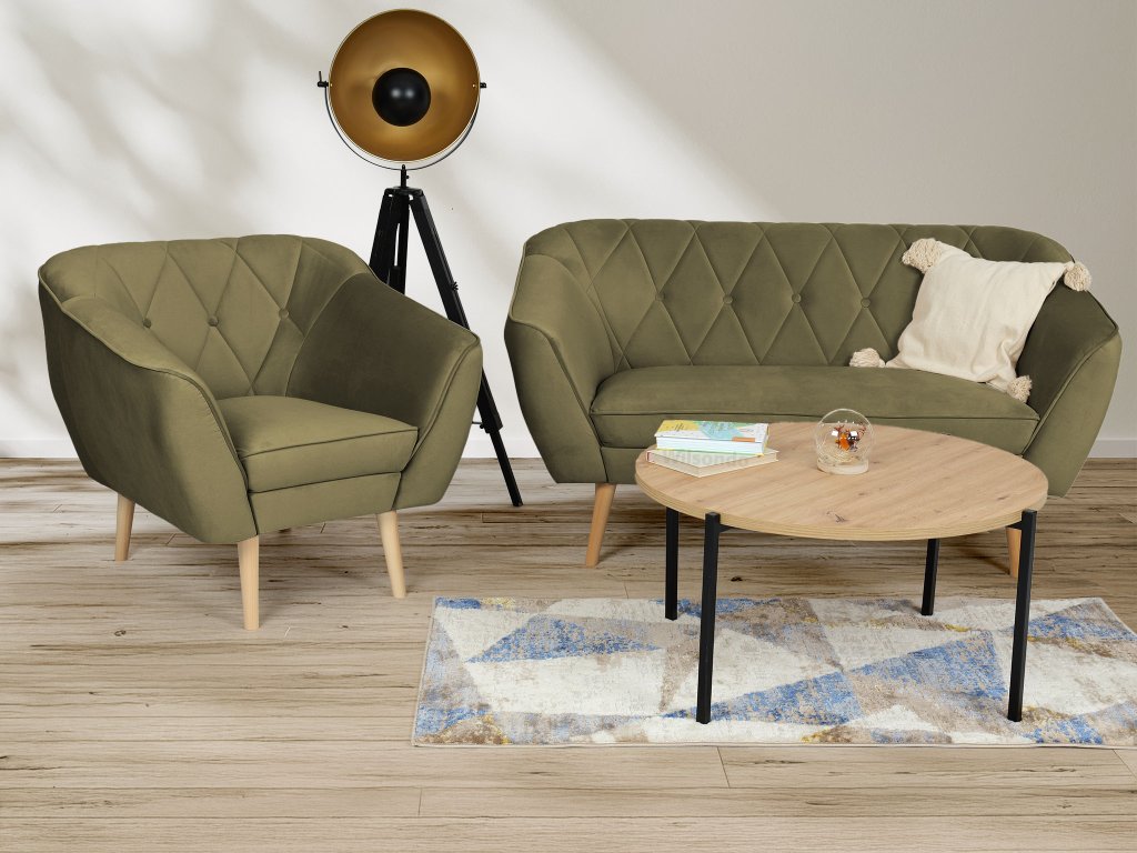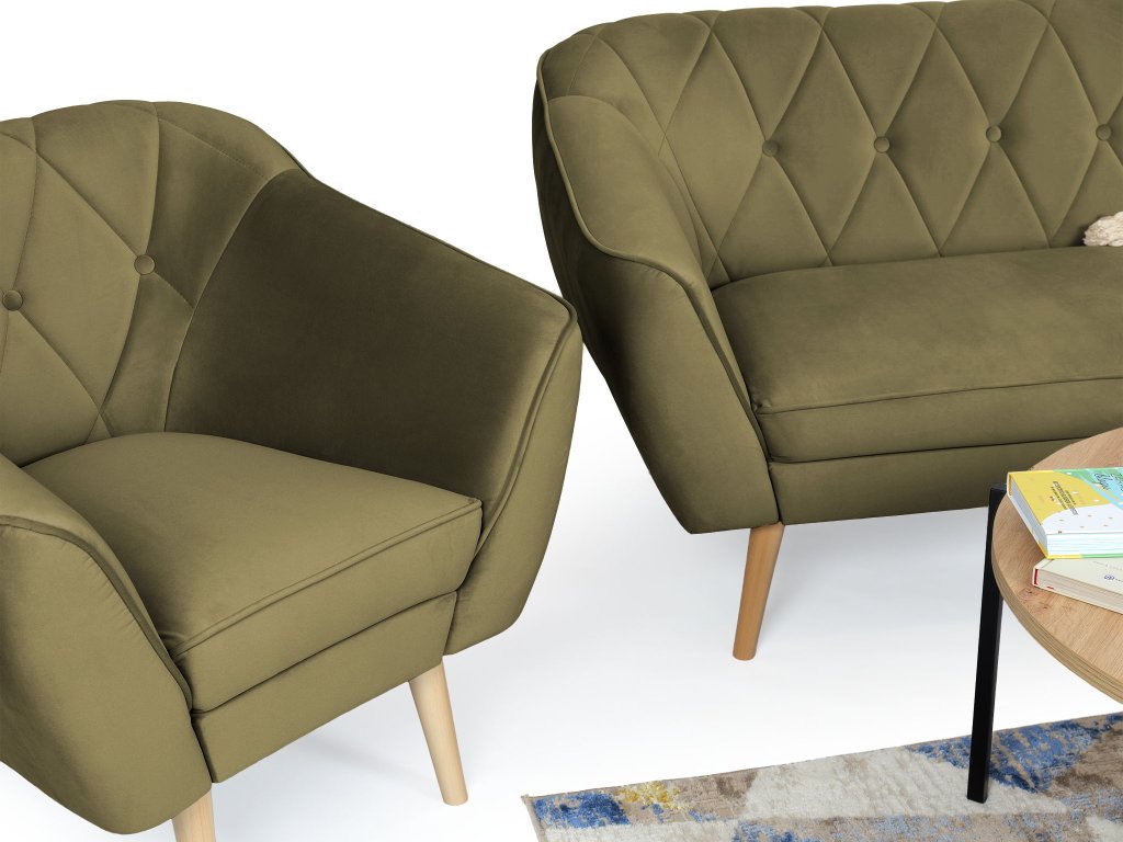 Sada Deana v olivovej farbe je štýlovým doplnkom každého priestoru – či už ju umiestnite do obývačky, pracovne alebo izby pre hostí.