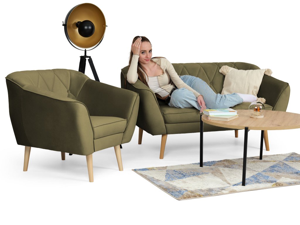 Hľadáte spôsob, ako vniesť do svojho interiéru prírodnú harmóniu a zároveň moderný štýl? Olivovozelená sada Deana – kreslo a dvojmiestna pohovka – je presne tým prvkom, ktorý zaujme na prvý pohľad, no zároveň pôsobí upokojujúco a nadčasovo. Táto elegantná farebná voľba pripomína pokoj lesa a výborne ladí s prírodnými aj neutrálnymi tónmi v domácnosti.
