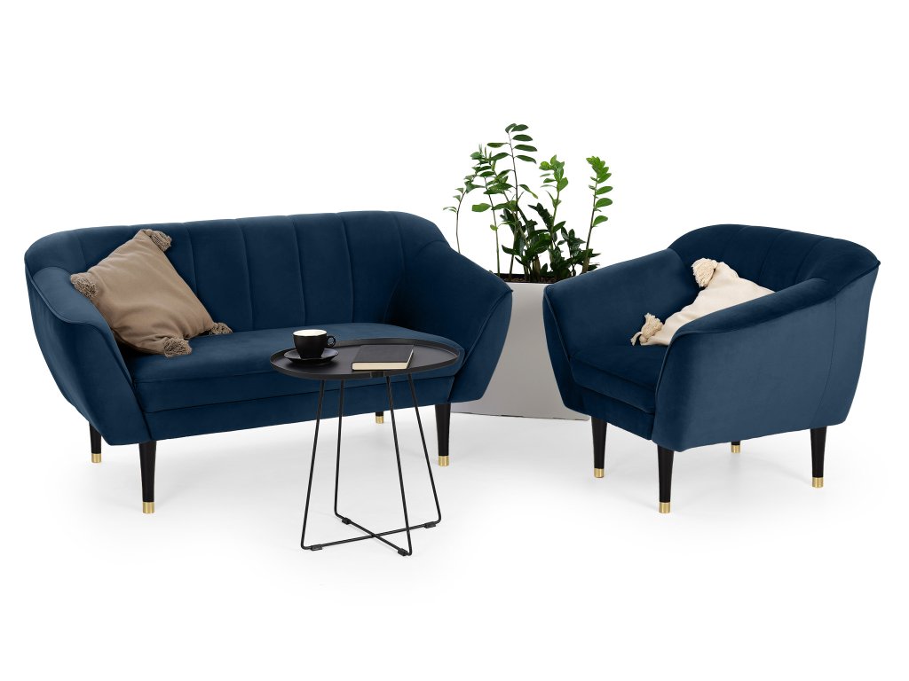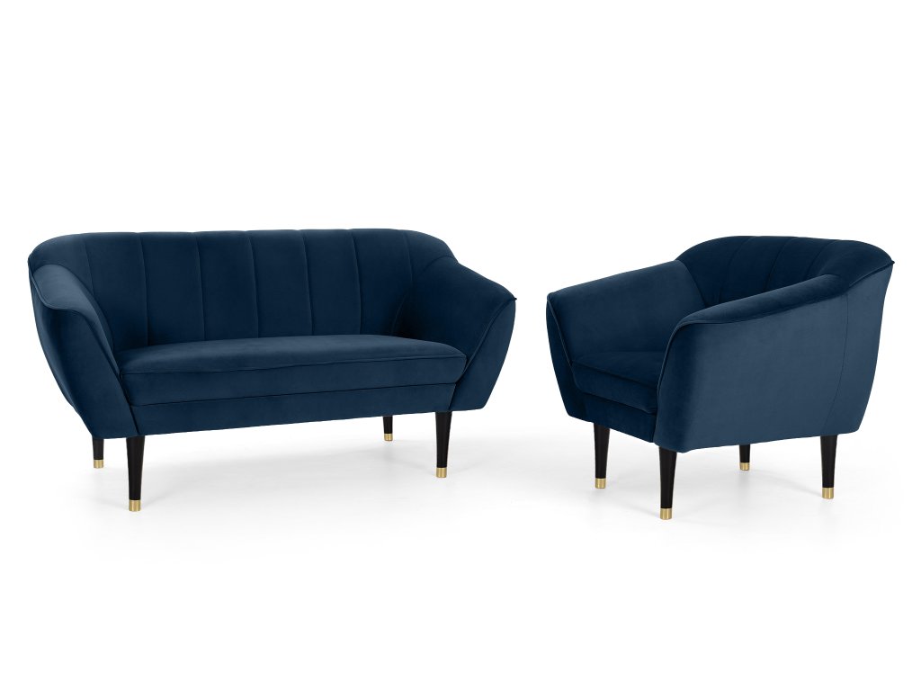 Sada nábytku na sedenie Diva v modrom prevedení prináša do vášho interiéru pokoj a sofistikovaný štýl. Táto sedacia súprava 2+1 pozostáva z dvojmiestnej pohovky a pohodlného kresla, ktoré spolu vytvárajú harmonický priestor na oddych. Modrá farba pôsobí elegantne, ľahko sa kombinuje s neutrálnymi aj výraznejšími doplnkami a robí z vašej pohovky do obývačky výrazný dizajnový prvok.