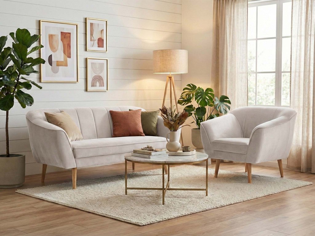 Sada nábytku na sedenie v pieskovej farbe vynikne v kombinácii s konferenčným stolíkom z prírodného dreva alebo s elegantnými kovovými detailmi. K pohodliu a útulnosti prispievajú textilné doplnky, ako sú vankúše, deky a mäkký koberec, ktorý vizuálne zjednocuje celú miestnosť. Úložné komody či regály dotvoria praktickú stránku obývačky a vytvoria priestor, kde sa môžete cítiť príjemne a komfortne.