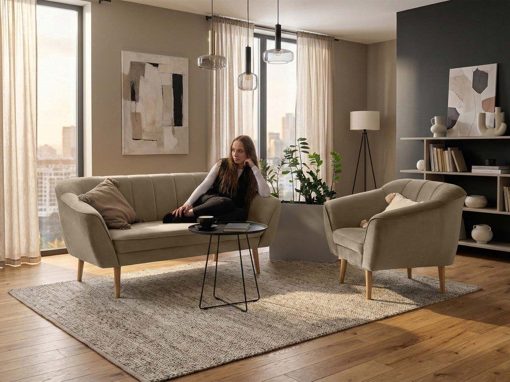 Svetlohnedé prevedenie sady Diva prináša do interiéru teplý, neutrálny odtieň, ktorý pôsobí harmonicky a útulne. Táto sedacia súprava 2+1 zahŕňa dvojmiestnu pohovku a kreslo, ktoré spolu vytvárajú pohodlný a vizuálne príťažlivý oddychový priestor. Svetlohnedá farba sa ľahko kombinuje s drevom, kovom aj doplnkami v neutrálnych či pastelových tónoch a robí z tejto pohovky do obývačky štýlový prvok interiéru.