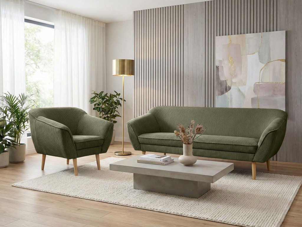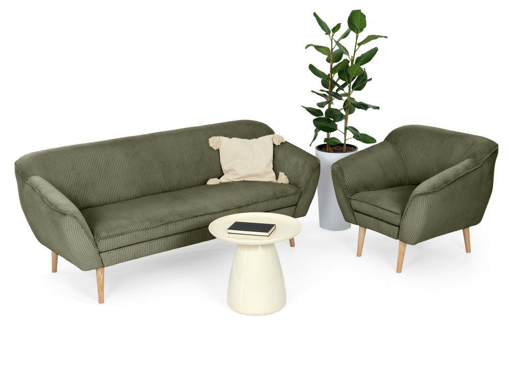 Olivová súprava Dory 3+1 prináša do interiéru harmóniu prírody a moderného dizajnu. Tento jemný zemitý odtieň pôsobí upokojujúco a zároveň štýlovo, čím sa stáva výrazným, no elegantným prvkom priestoru. Pohovka poskytuje komfortné sedenie na každodenný relax, zatiaľ čo kreslo dopĺňa súpravu ako praktický a vizuálne príťažlivý doplnok. Sedáky z kvalitnej peny T30 ponúkajú optimálnu oporu, zatiaľ čo operadlá a opierky z peny T25 zabezpečia uvoľnenie po náročnom dni. Vyššie nožičky z prírodného dreva dodávajú nábytku ľahkosť, vzdušnosť a uľahčujú upratovanie aj s robotickým vysávačom. Olivová Dory tak spája štýl, pohodlie a praktickosť v jednom nadčasovom riešení pre každý domov.
