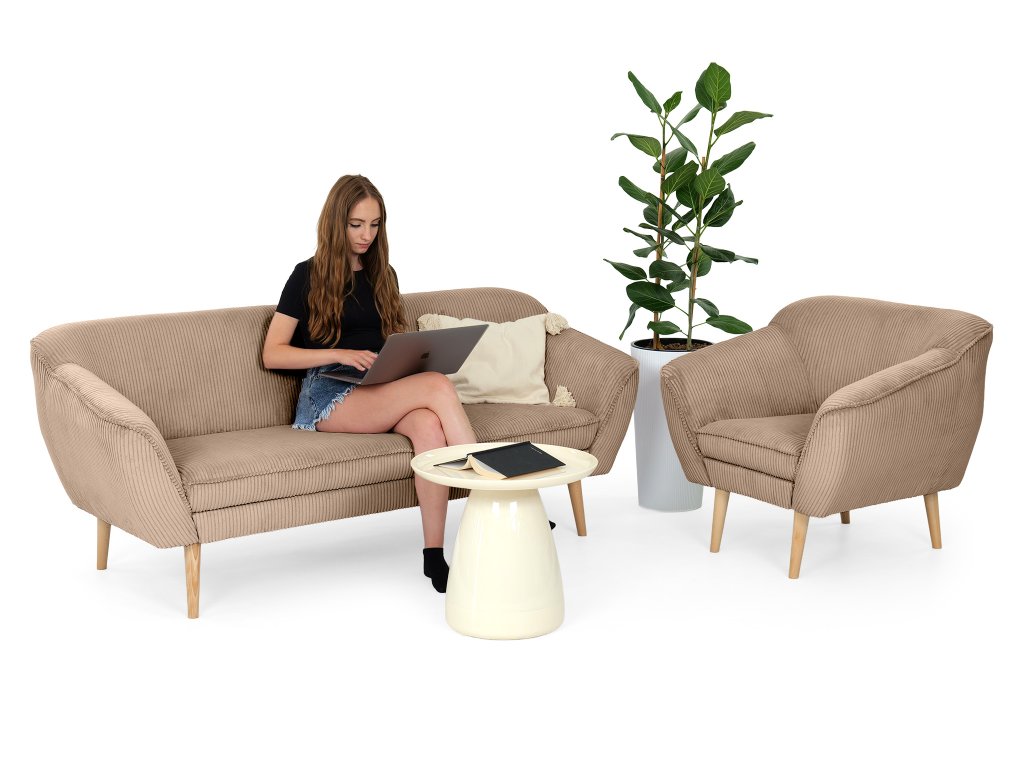 Sedáky z kvalitnej peny T30 poskytujú optimálnu oporu a komfort, zatiaľ čo operadlá a opierky z peny T25 zaručujú uvoľnenie a pohodlie po náročnom dni. Vysoké nožičky z prírodného dreva dodávajú nábytku vzdušnosť a uľahčujú upratovanie, vrátane použitia robotického vysávača.