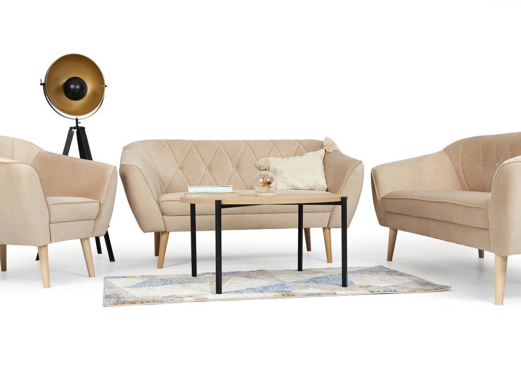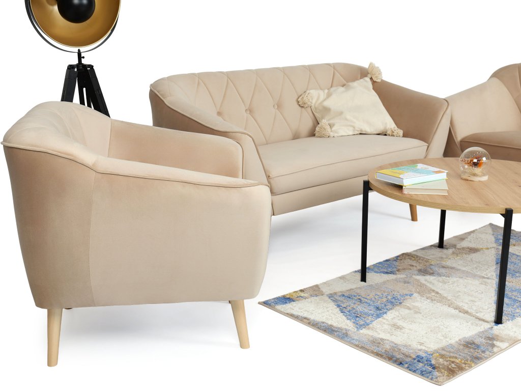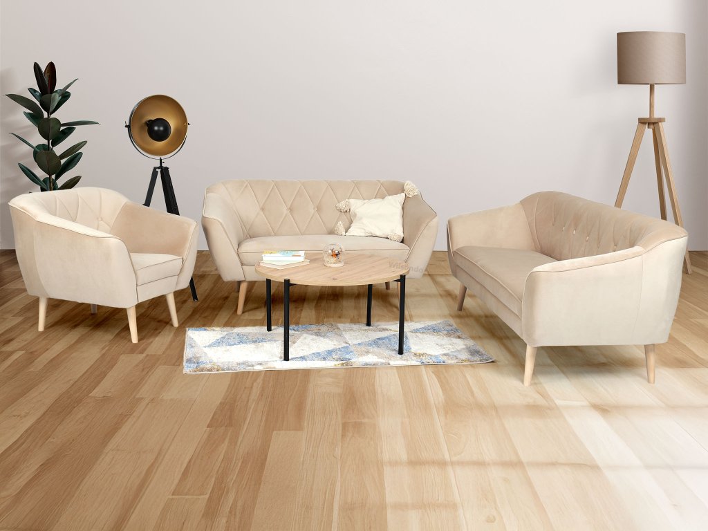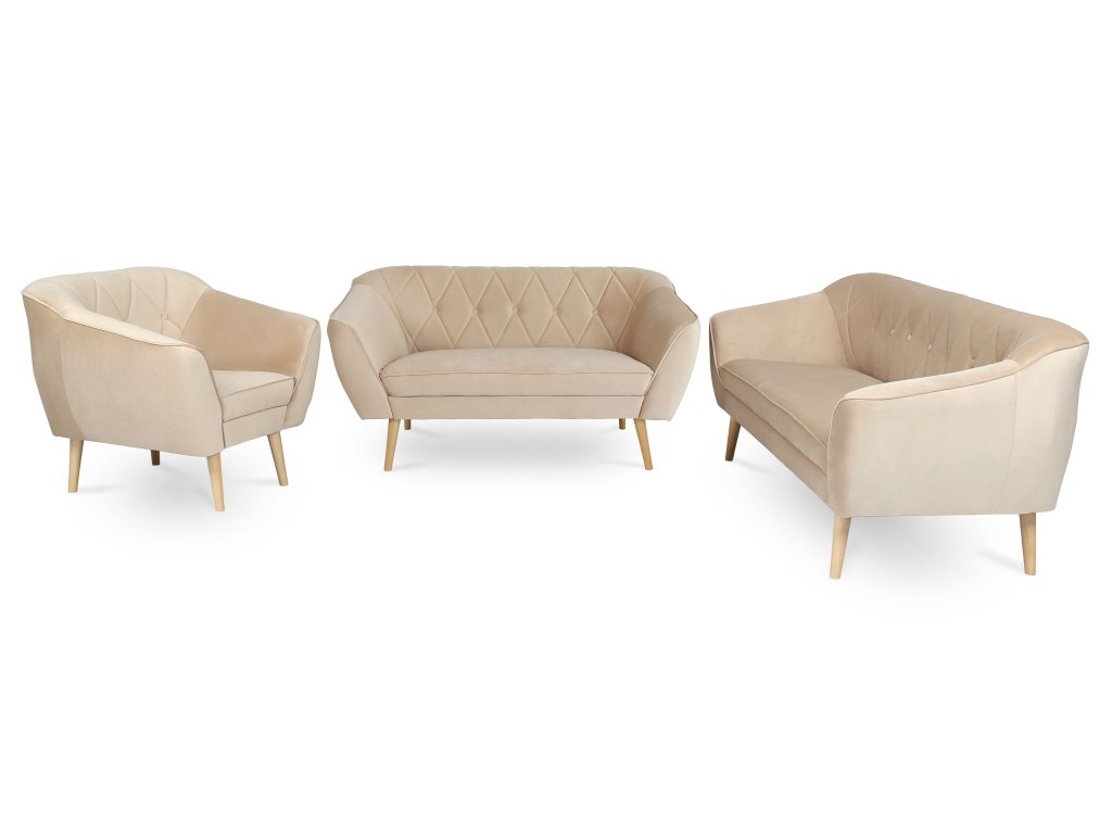 Sedacia súprava Deana v pieskovej farbe s drevenými nožičkami