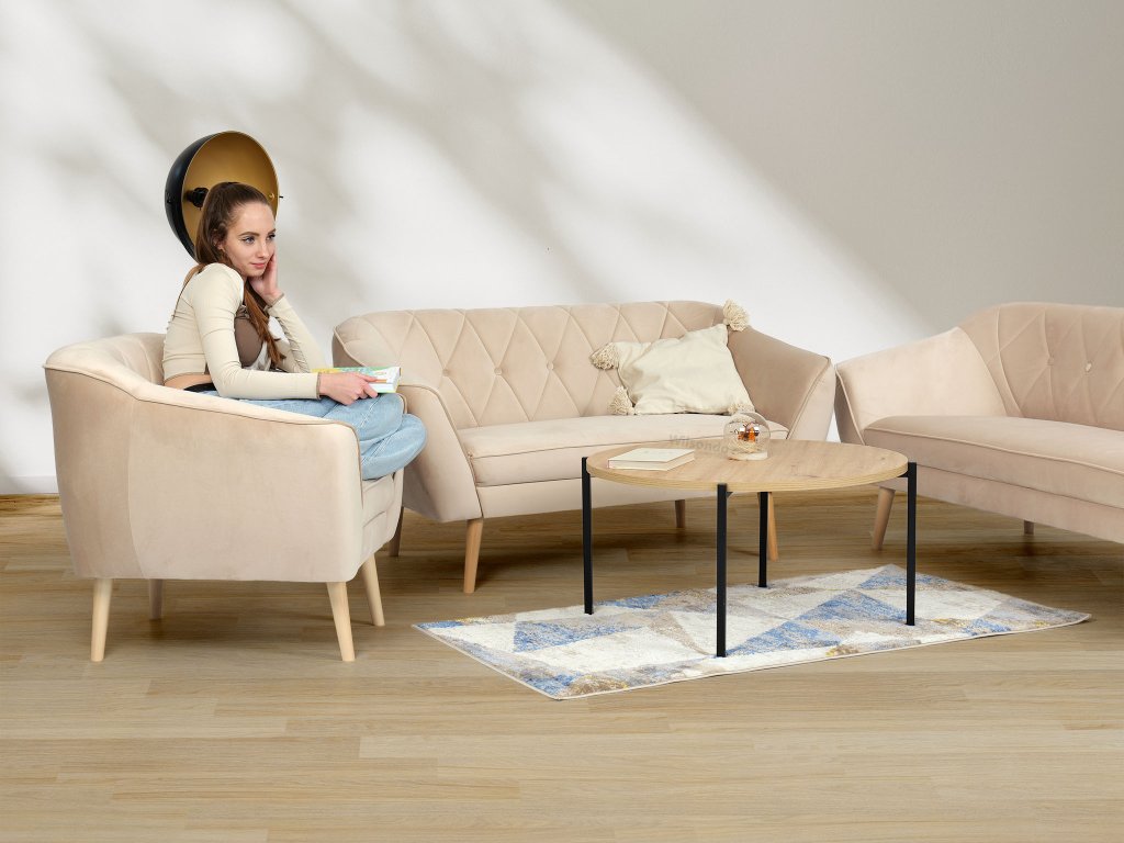 Vytvorte si vo svojej obývačke dokonalý priestor na sedenie a oddych zároveň. Béžová sedacia súprava Deana vás očarí svojím škandinávskym štýlom. Tento set, zahŕňa priestrannú pohovku, menšiu pohovku a útulné kreslo. Tým zaručite miesto pre celú rodinu alebo návštevu. Jej dlhú životnosť a stály atraktívny vzhľad zabezpečuje látka Royal, ktorá je známa svojou mimoriadnou jemnosťou a odolnosťou. Vaše telo si užije maximálny komfort vďaka peny T30 v sedadlách, ktorá poskytuje mäkkosť a pružnosť, zatiaľ čo pena T25 v operadlách sa postará o pevnú oporu chrbta počas celého dňa. Deana je navrhnutá tak, aby sa stala ústredným bodom vášho interiéru. Pre kompletný vzhľad vo vašej obývačke ju ľahko doplnite už iba vami vybraným konferenčným stolíkom.