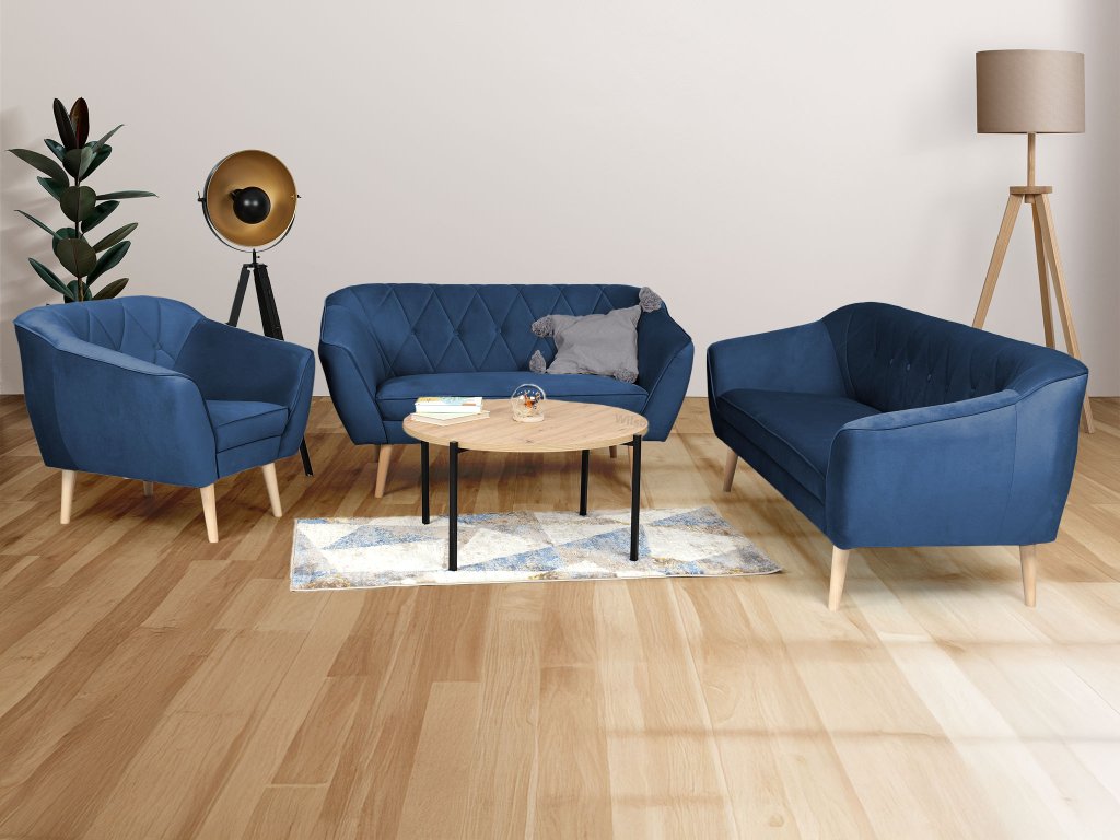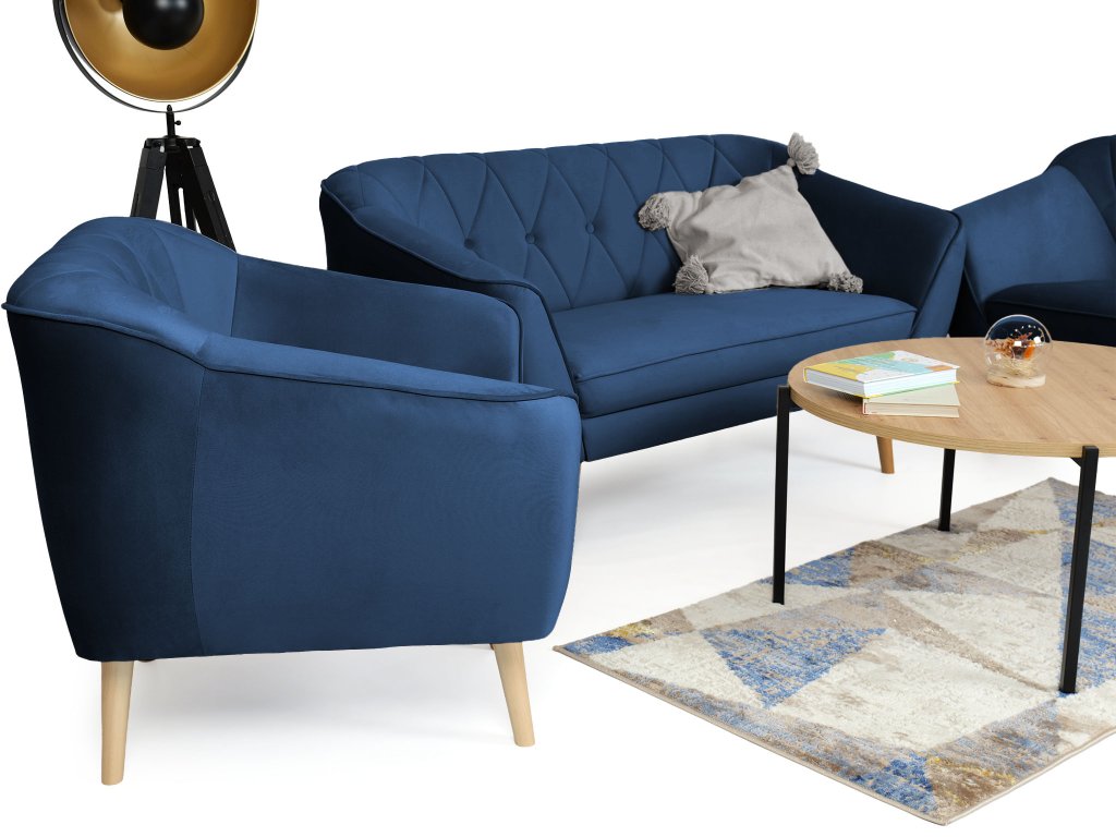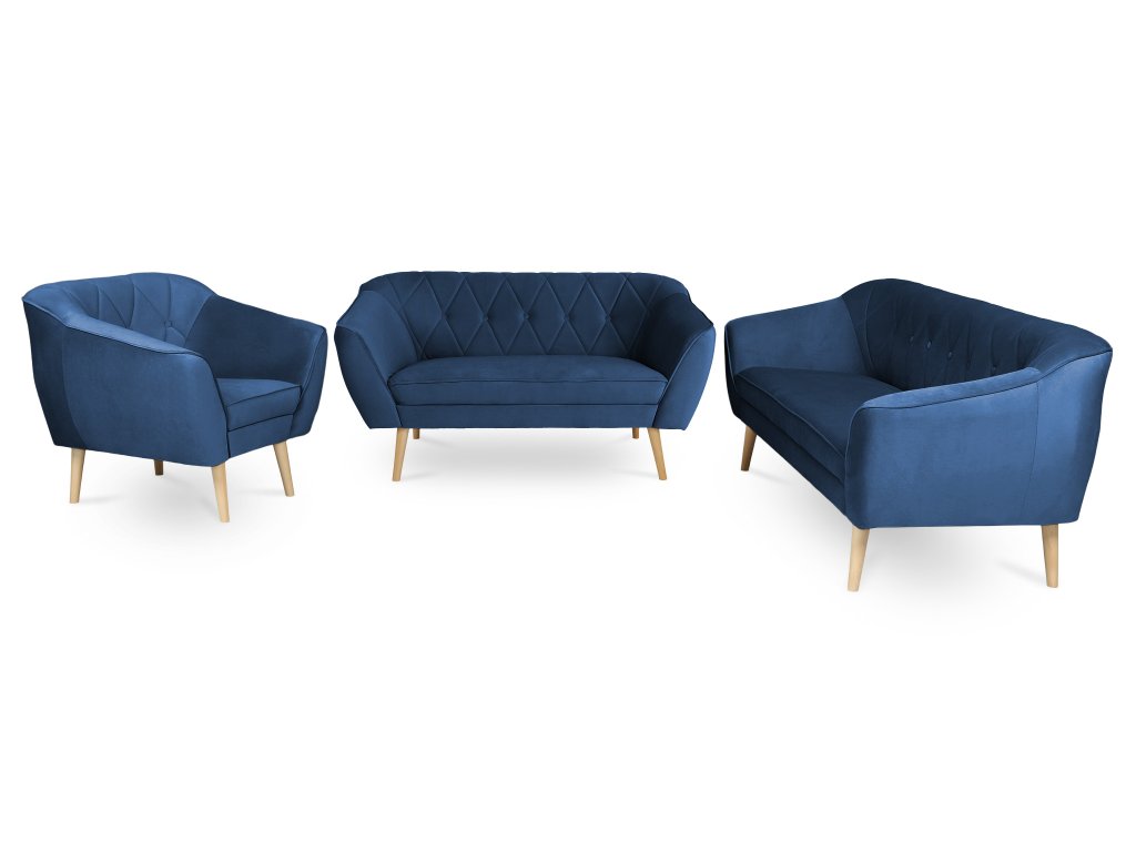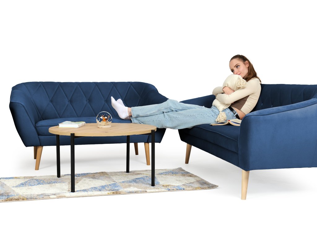 Sedacia súprava Deana v elegantnom modrom prevedení skvele doplní každú modernú domácnosť a poskytne vám ideálne miesto na každodenný relax. Tento set sa skladá z priestrannej trojmiestnej pohovky, praktickej dvojmiestnej pohovky a pohodlného kresla, takže ponúka dostatok priestoru pre rodinu aj hostí. Na výrobu bola použitá látka Royal, ktorá je nielen príjemná na dotyk, ale zároveň vyniká pevnosťou a vysokou odolnosťou, vďaka čomu si súprava zachová svoj pôvodný vzhľad. Sedadlá obsahujú kvalitnú penu T30, operadlá sú vyplnené penou T25, čo zabezpečí optimálnu oporu chrbta a komfort pri sedení i dlhšom oddychu. O stabilitu a štýlový vzhľad sa starajú drevené nožičky v univerzálnej farbe, ktoré navyše uľahčia udržiavanie čistoty pod nábytkom. Súprava vynikne najmä v obývačke, kde k nej stačí doplniť konferenčný stolík, aby ste si vytvorili príjemný priestor na oddych, prácu aj spoločné chvíle s blízkymi.