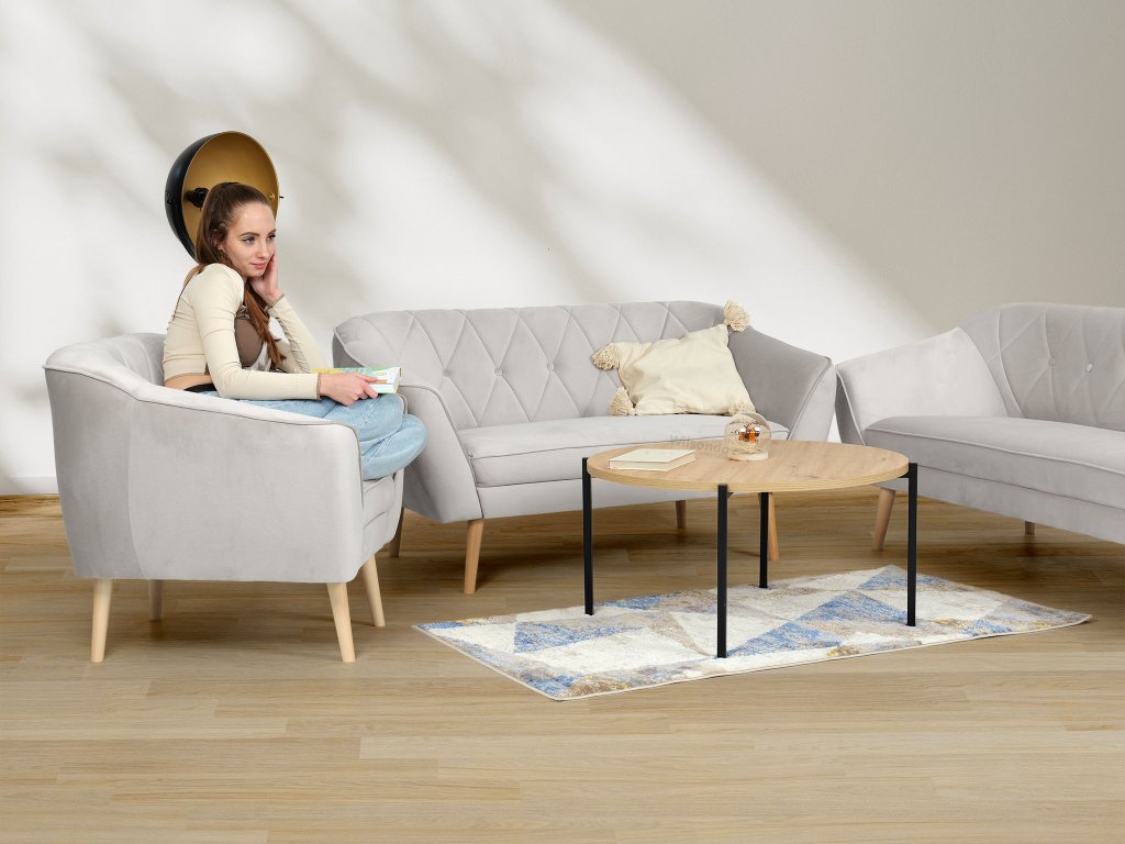 Ak túžite po sedacej súprave, ktorá do vášho domova prinesie dávku pohodlia, sedacia súprava Deana v sivom odtieni je ideálnou voľbou. Tento elegantný set tvorí väčšia pohovka, menšia pohovka a kreslo, takže si pohodlie užije každý člen domácnosti aj návšteva. Čalúnenie je vyrobené z látky Royal, ktorá vyniká mäkkosťou a mimoriadnou odolnosťou, takže nábytok si uchová svoj krásny vzhľad aj pri každodennom používaní. Sedadlá obsahujú penu T30, vďaka čomu sú pohodlné a pružné, zatiaľ čo operadlá vyplnené penou T25 ponúkajú spoľahlivú oporu pre chrbát. Súprava stojí na pevných nožičkách z dreva v prírodnom odtieni, čo jej dodáva stabilitu a zároveň štýlový vzhľad. Tento set vynikne v každej obývačke, kde si k nemu stačí pridať konferenčný stolík a získate útulné miesto na relax, prácu či spoločné rodinné chvíle.