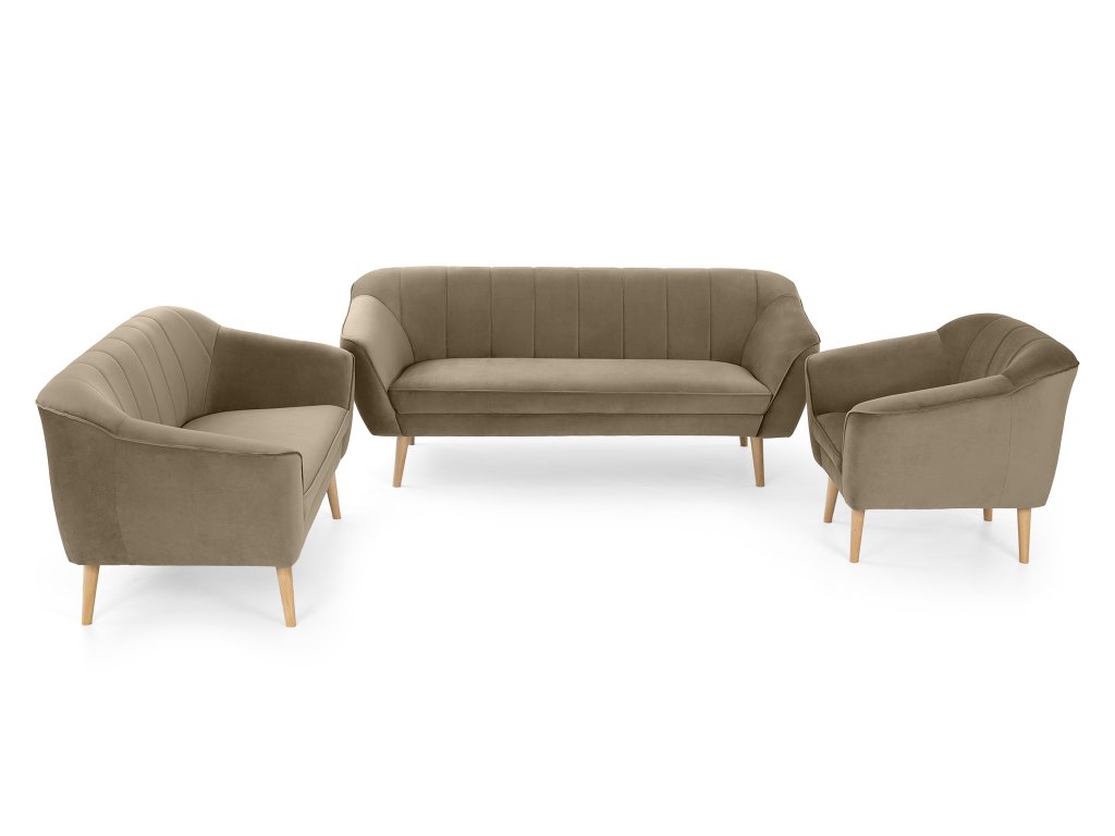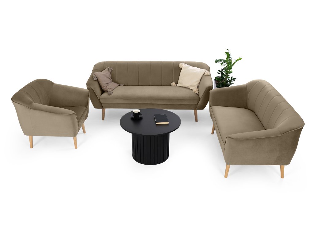 Hľadáte nábytok, ktorý do vašej obývačky zapadne bez toho, aby ju farebne zahltil? Svetlohnedá sedacia súprava 3+2+1 Diva prináša presne tú správnu mieru útulnosti a moderného dizajnu. Zostava Diva, zložená z priestrannej trojmiestnej pohovky, dvojmiestnej pohovky a pohodlného kresla, pôsobí v priestore veľmi ľahko a prirodzene. Kombinácia jemnej zamatovej látky Royal a svetlohnedých drevených nôh vytvára čistý vzhľad, ktorý vnesie do vášho domova potrebný pokoj. Stavte na overenú kombináciu farieb a materiálov, ktoré vytvoria hrejivé zázemie pre celú rodinu.