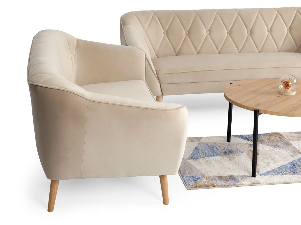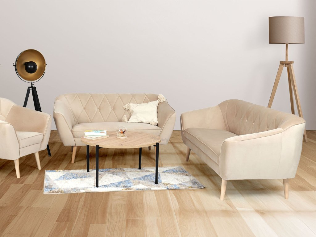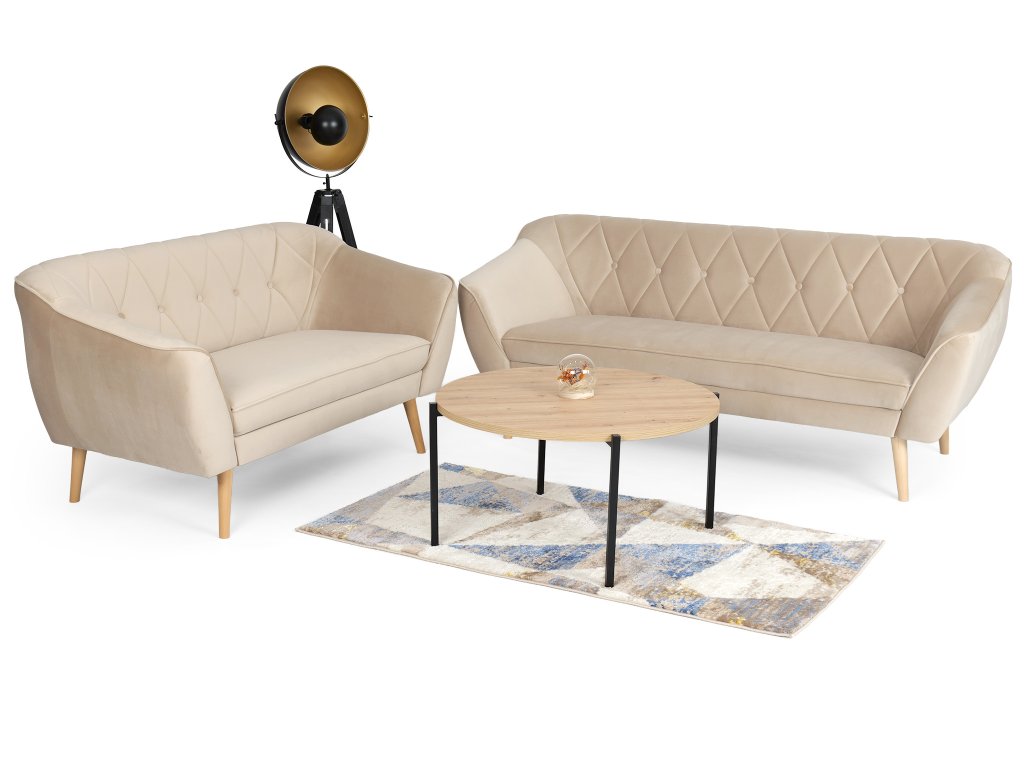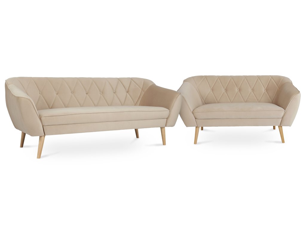 Hľadáte sedaciu súpravu, ktorá vašej obývačke dodá moderný vzhľad a zároveň sa postará o vaše pohodlie? Béžová sedacia súprava Deana je na to ako stvorená. Tento obývačkový set pozostáva z trojmiestnej a dvojmiestnej pohovky, takže vám ponúkne dostatok miesta na oddych po náročnom dni aj na príjemné posedenia s rodinou či priateľmi. Vďaka škandinávskemu dizajnu a starostlivo vybraným materiálom si udrží svoj vzhľad dlhé roky. Sedadlá s penovou výplňou T30 zaručujú maximálny komfort pri sedení a operadlá s penou T25 poskytnú ideálnu oporu chrbtu. Celá súprava je čalúnená kvalitnou látkou Royal, ktorá pôsobí luxusne a je príjemná na dotyk. Obidve pohovky dopĺňajú elegantné drevené nožičky v neutrálnom tóne. Stačí už len pridať konferenčný stolík podľa vášho vkusu a premeníte svoju obývačku na útulný priestor.