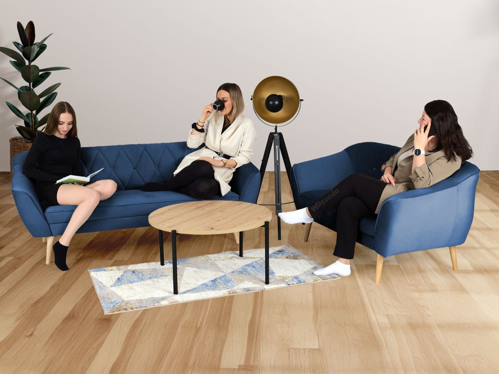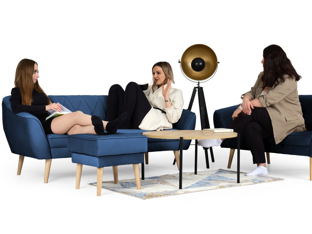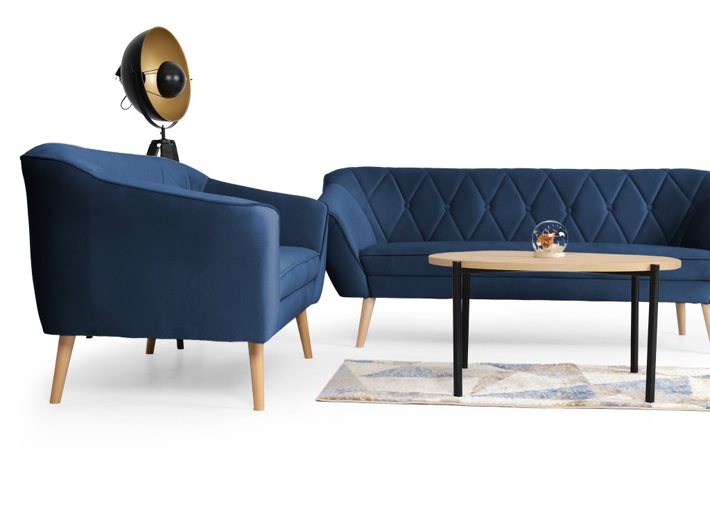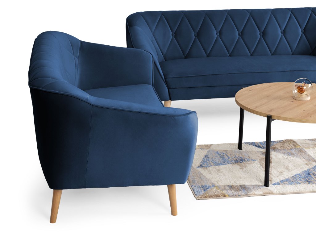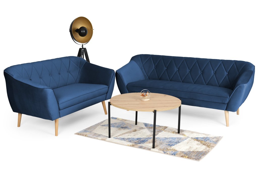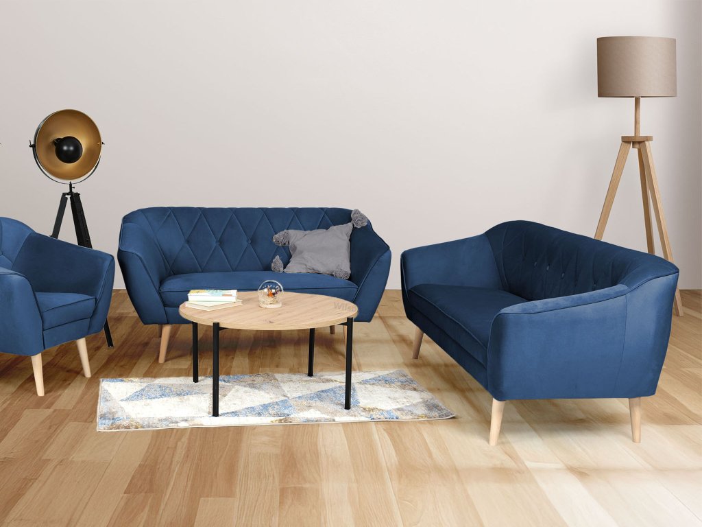 Ak túžite po nábytku, ktorý oživí váš interiér, modrá sedacia súprava Deana je tou správnou voľbou. Tento set tvorí trojmiestna a dvojmiestna pohovka, ktoré vám poskytnú dostatok priestoru na relax aj spoločné chvíle s rodinou či priateľmi. Ich nadčasový dizajn dopĺňa vysoká kvalita materiálov a precízne spracovanie, vďaka čomu si zachovajú svoj elegantný vzhľad dlhé roky. Sedadlá s výplňou z peny T30 sa postarajú o maximálne pohodlie počas sedenia. Operadlá s penou T25 zabezpečia ideálnu oporu pre váš chrbát. Obidve pohovky sú postavené na drevených nožičkách v neutrálnej farbe, ktoré umožňujú jednoduché upratovanie pod nábytkom. Ak súpravu doplníte konferenčným stolíkom podľa vášho vkusu, premeníte tak svoju obývačku na príjemné miesto.
