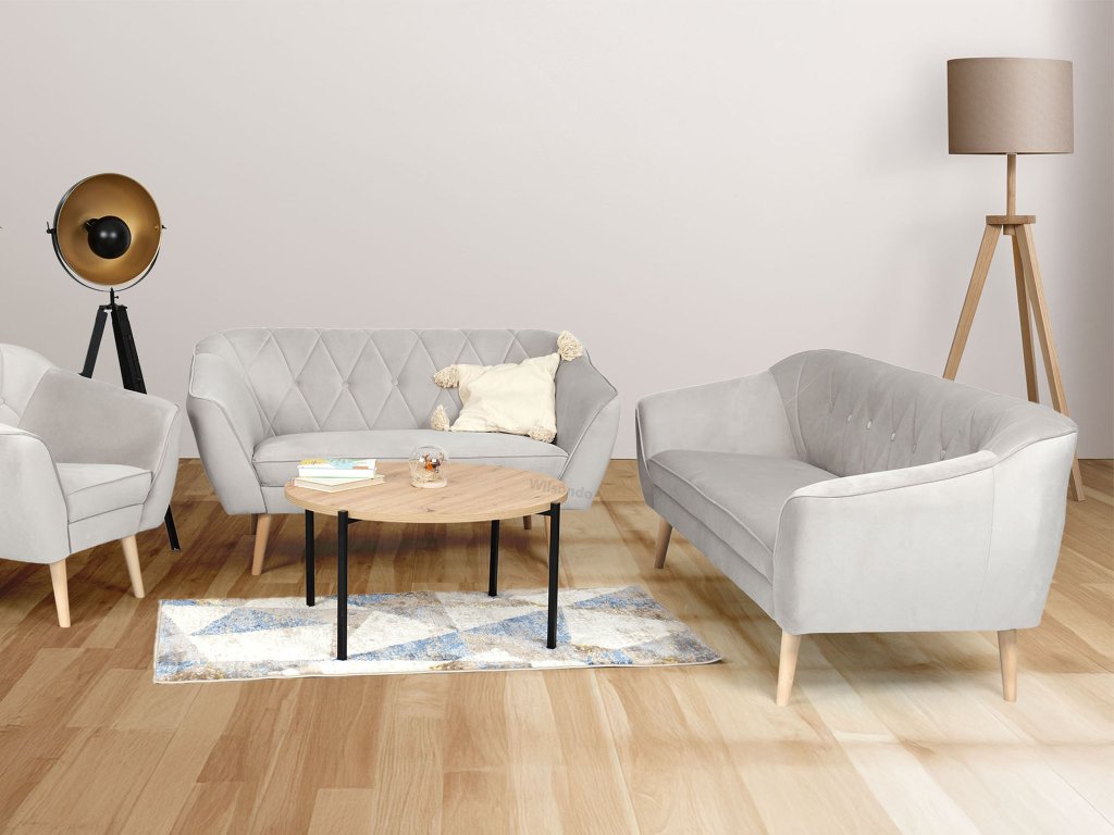 Sivá sedacia súprava Deana sa stane výrazným prvkom vašej obývačky a dodá jej moderný nádych. Tento praktický set pozostáva z trojmiestnej a dvojmiestnej pohovky, ktoré vytvoria dostatok priestoru na oddych, rozhovory s rodinou či posedenia s priateľmi. O elegantný vzhľad, ktorý vydrží roky, sa postarajú kvalitné materiály a precízne vypracovanie. Maximálne pohodlie pri sedení zabezpečujú sedadlá s penovou výplňou T30, zatiaľ čo operadlá s penou T25 poskytnú potrebnú oporu chrbtu. Pohovky dopĺňajú drevené nožičky v neutrálnom odtieni, ktoré pôsobia vkusne a zároveň uľahčujú upratovanie pod nábytkom. Stačí pridať konferenčný stolík podľa vášho vkusu a vytvoríte si v obývačke útulný a príjemný priestor na každodenný relax aj spoločné chvíle.