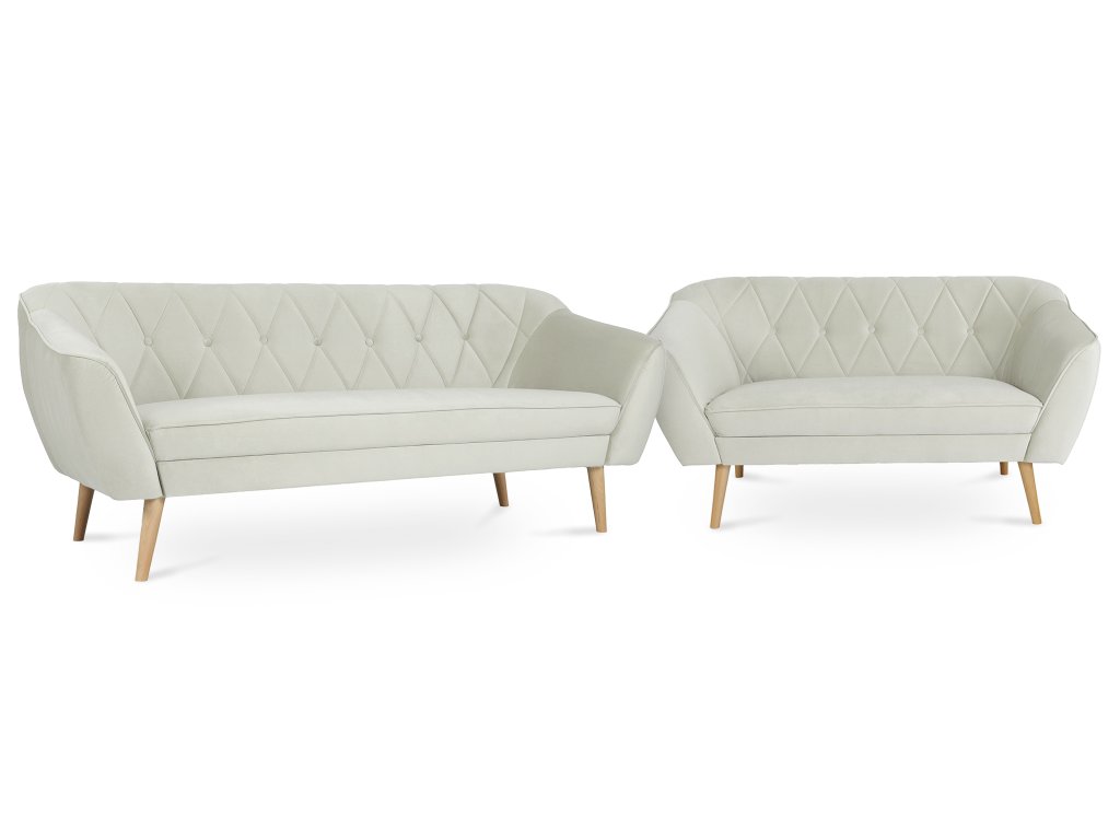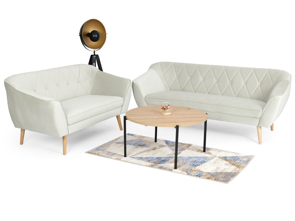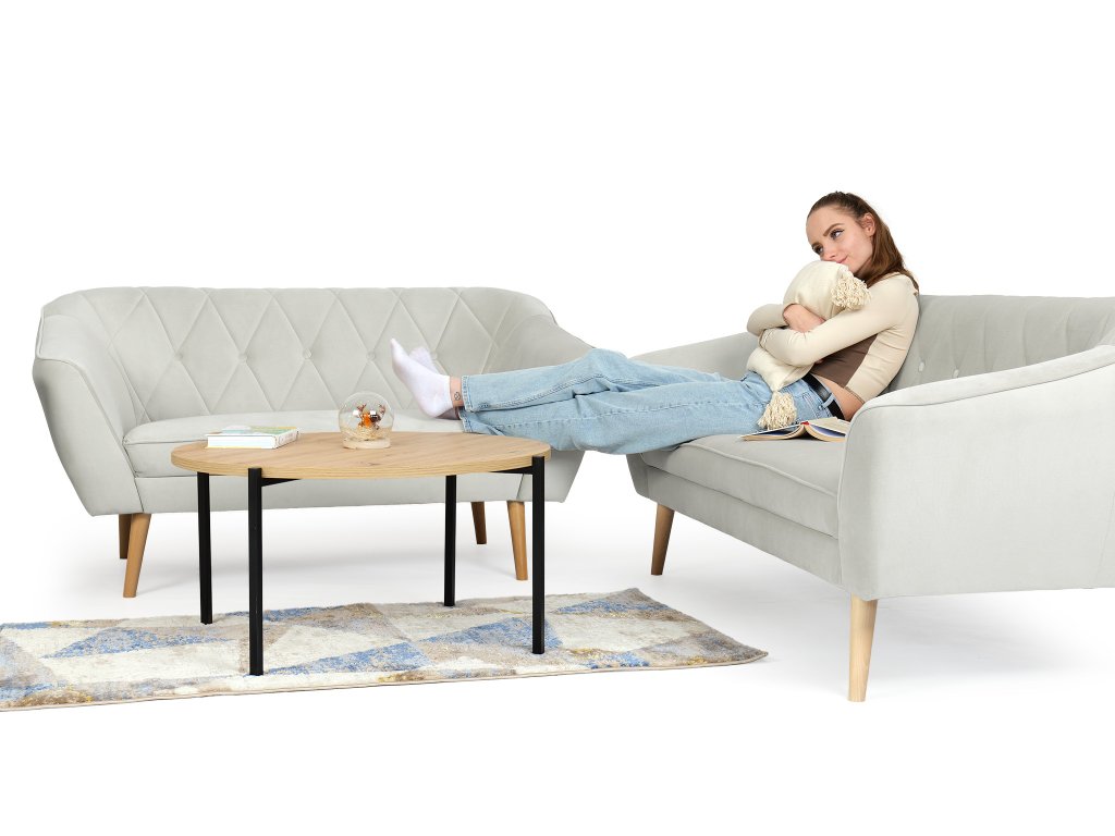 Sedacia súprava Deana v jemnom smotanovom odtieni premení vašu obývačku na miesto plné pohodlia a štýlu. Tento set sa skladá z veľkej pohovky a kompaktnejšej pohovky, takže ponúka dostatok priestoru na sedenie pre hostí aj celú rodinu. Čalúnenie z odolnej a príjemnej látky Royal zabezpečí, že súprava si zachová svoj pôvabný vzhľad počas každodenného používania. Pohodlné sedadlá vyplnené penou T30 poskytujú optimálnu mäkkosť a pružnosť. Opierky chrbta s penou T25 sa postarajú o správnu oporu počas oddychu. Vďaka svojmu modernému dizajnu sa Deana stane centrom vášho interiéru a vytvorí útulné miesto na relax, rozhovory s blízkymi aj pokojné chvíle osamote. Doplnením o konferenčný stolík podľa vášho vkusu získate harmonický priestor, ktorý naplno využijete každý deň.