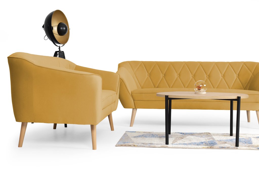 Ak hľadáte sedaciu súpravu, ktorá vnesie do vašej obývačky dávku elegancie, tak žltá súprava Deana je ideálnou voľbou. Tento set pozostáva z dvojmiestnej a trojmiestnej pohovky, ktoré ponúkajú dostatok miesta na pohodlný oddych aj spoločné chvíle. Pohovky sú čalúnené príjemnou látkou Royal, ktorá pôsobí luxusne a zároveň je praktická na každodenné používanie. Kvalitné materiály a precízne spracovanie zaručujú, že si súprava zachová svoj elegantný vzhľad po dlhé roky. Sedadlá s penovou výplňou T30 sa postarajú o maximálne pohodlie pri sedení, zatiaľ čo operadlá s penou T25 poskytujú oporu vášmu chrbtu. Obe čalúnené pohovky stoja na drevených nožičkách v neutrálnom odtieni. Stačí ju doplniť konferenčným stolíkom podľa vášho vkusu a vytvoríte vo svojej obývačke útulný priestor na oddych.