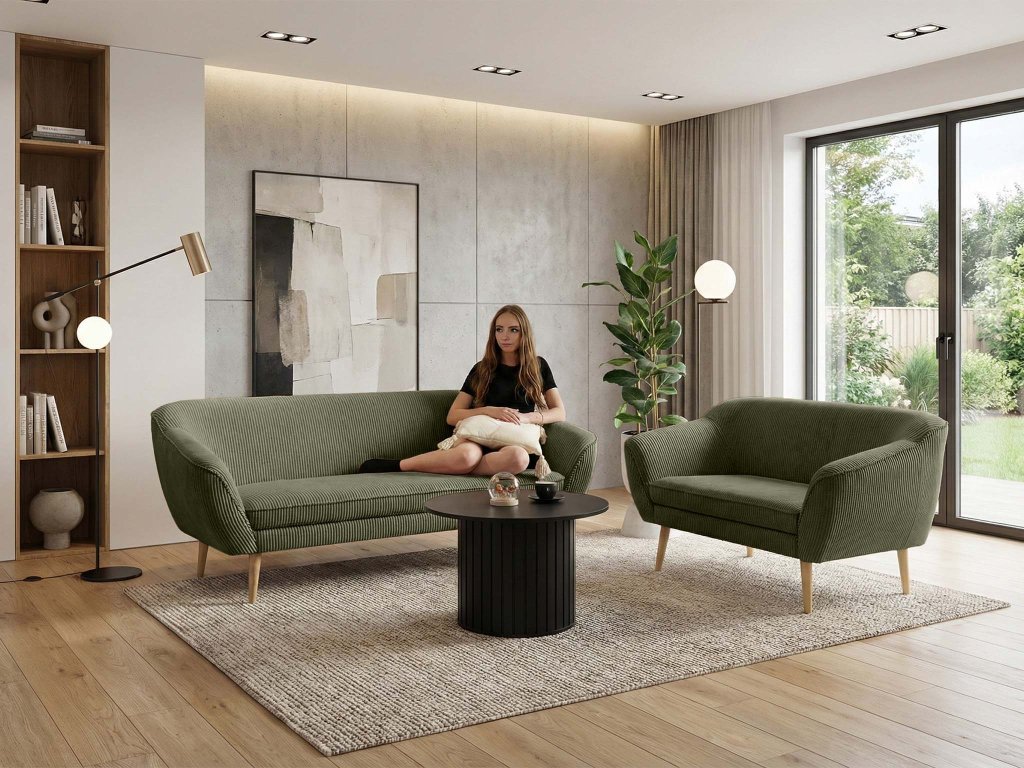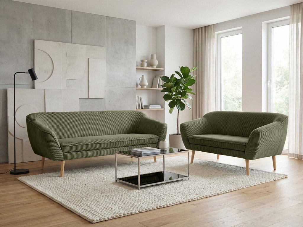 Vytvorte si sedenie presne podľa svojich predstáv so sedacou súpravou Dory 3+2 v olivovej farbe. Dve samostatné pohovky vám dávajú slobodu v usporiadaní priestoru – či už ich postavíte oproti sebe pre lepšiu konverzáciu, alebo ich rozdelíte do rôznych častí miestnosti. Výrazný menčestrový poťah v zemitom tóne je mimoriadne praktický na údržbu, zatiaľ čo pevná konštrukcia zaručuje stabilitu, ktorú v domácnosti očakávate.