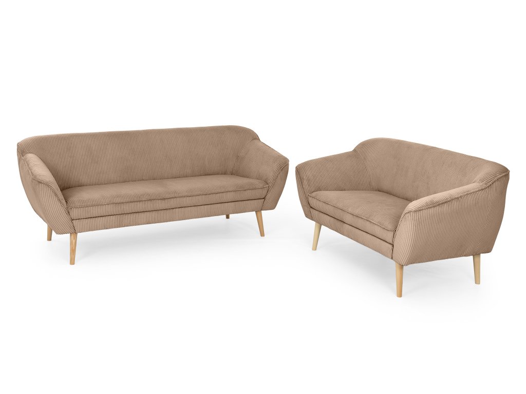 Zariaďujete obývací priestor a hľadáte nábytok, ktorý nepodlieha najnovším trendom? Sedacia súprava 3+2 Dory vo svetlohnedom prevedení predstavuje nadčasovú voľbu a vďaka dvom samostatným dielom ponúka flexibilné usporiadanie podľa dispozície vašej miestnosti. Set trojmiestnej a dvojmiestnej pohovky sa vyznačuje jednoduchými líniami a funkčným menčestrovým poťahom. Masívne drevené nožičky zabezpečujú stabilitu a dotvárajú prirodzený vzhľad, ktorý sa ľahko kombinuje s ostatným interiérovým vybavením.