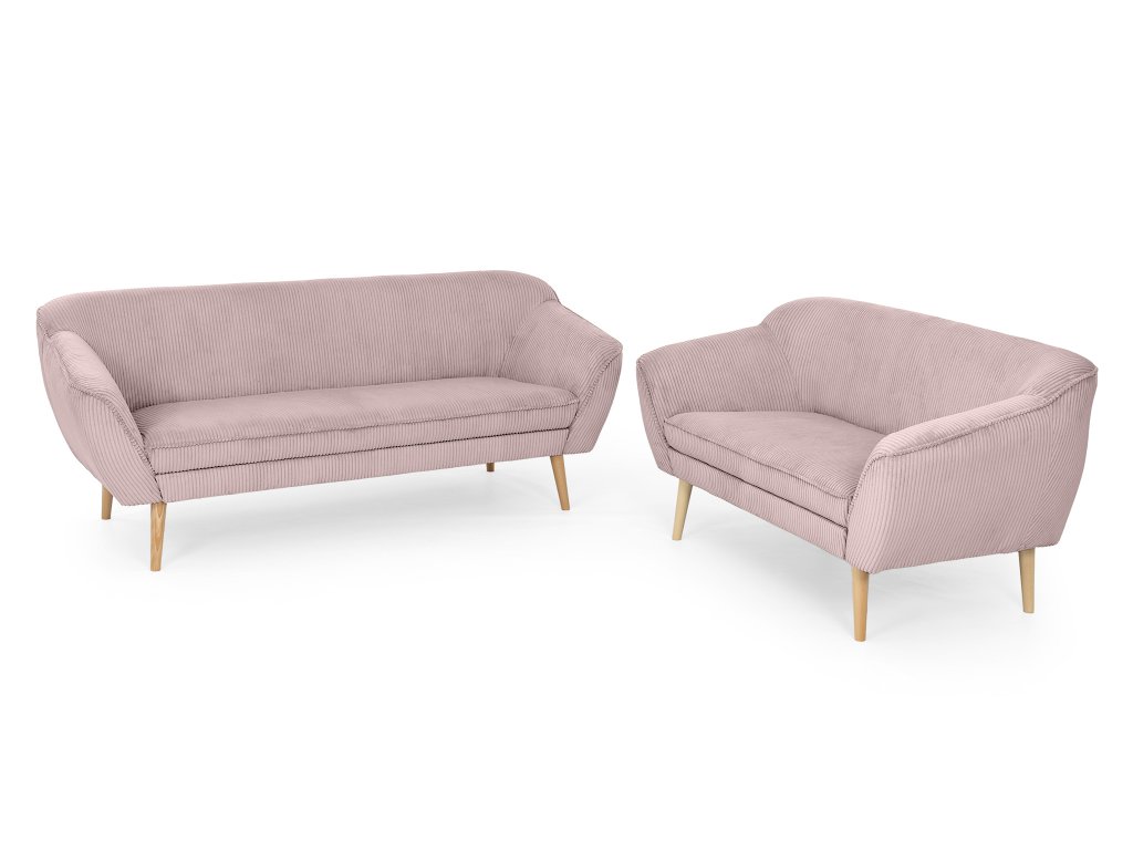 Hľadáte sedaciu súpravu, ktorá osvieži váš interiér bez toho, aby pôsobila rušivo? Sedacia súprava 3+2 Dory v svetloružovom odtieni je nadčasová a vďaka dvom samostatným pohovkám ponúka praktické riešenie pre rôzne dispozície miestností. Tento set, zložený z trojsedačky a dvojsedačky, vás zaujme čistým tvarom a kvalitným menčestrovým povrchom. Stabilitu celého setu zabezpečujú drevené nožičky, ktoré prirodzene dopĺňajú vzhľad odolný voči meniacim sa trendom, vďaka čomu súprava zapadne do každej súčasnej domácnosti.