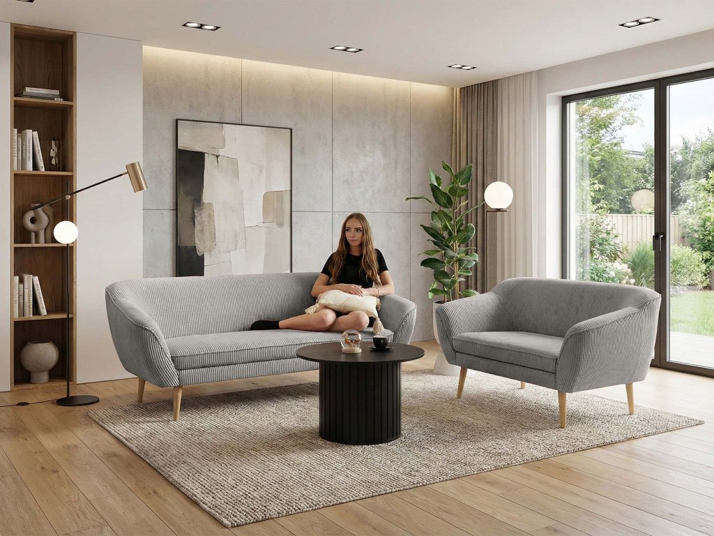 Poťah súpravy tvorí obľúbená látka Lincoln 86, ktorá je typická svojím vrúbkovaním. Menčester sa vyznačuje širokým rebrovaním, ktoré je mimoriadne príjemné na dotyk, no zároveň vyniká odolnosťou voči žmolkovaniu, čo uľahčuje jeho dlhodobú údržbu. Svetlosivý odtieň č. 86 pôsobí veľmi univerzálne, vďaka čomu sa ľahko prispôsobí akejkoľvek farebnej kombinácii, od jemných pastelov až po sýte tmavé tóny.