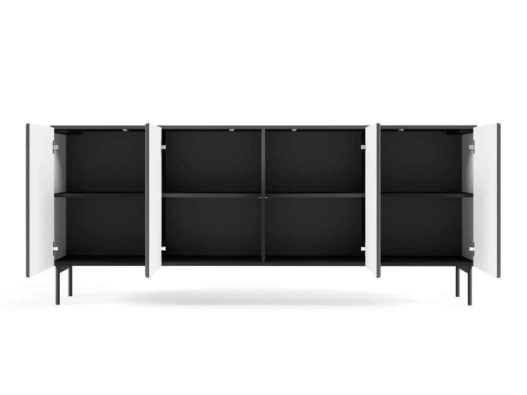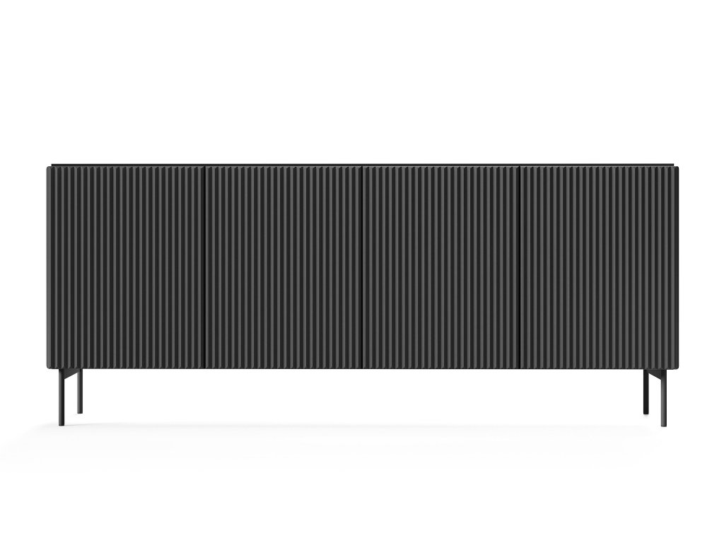 Moderný výraz dopĺňajú štíhle čierne kovové nohy, ktoré komode dodávajú ľahkosť a zároveň zabezpečujú stabilitu. Široká komoda MUTI je štýlovým prvkom, ktorý dokonale skombinuje estetiku, funkčnosť a súčasné dizajnové trendy.