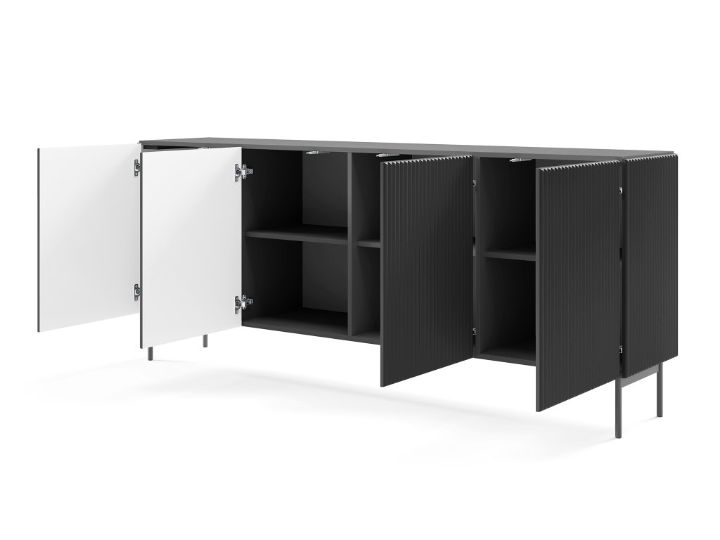 Široká komoda MUTI je ideálnou voľbou pre tých, ktorí hľadajú priestranný úložný priestor v modernom, elegantnom prevedení. Vďaka svojmu nadčasovému dizajnu sa dokonale hodí ako komoda do obývačky, komoda do chodby či do spálne. Charakteristické vertikálne drážkované čelá jej dodávajú výrazný a trendy vzhľad, ktorý v interiéri okamžite upúta pozornosť.