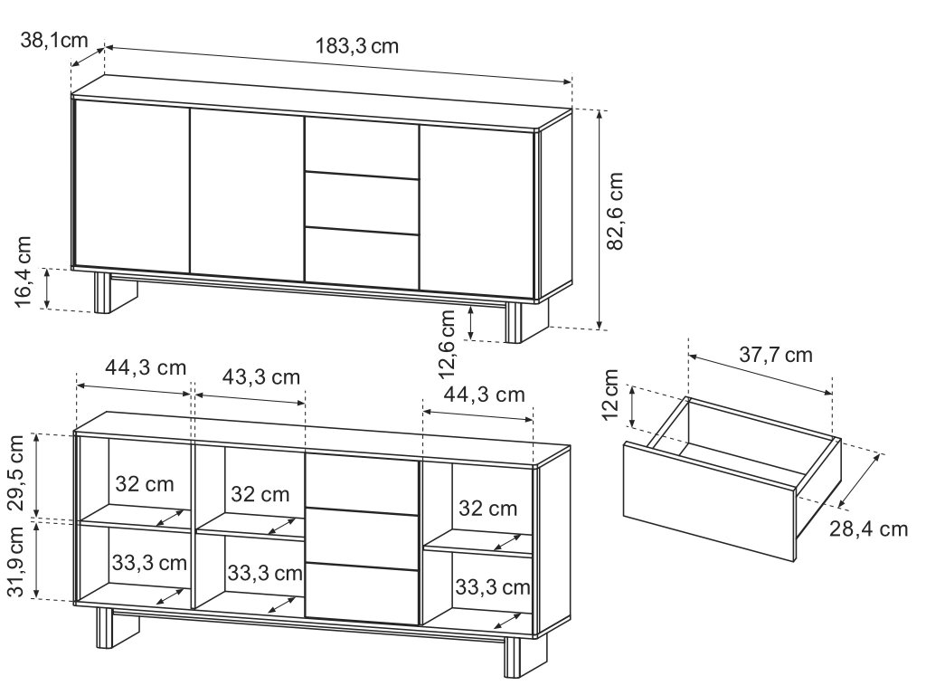 - Rozmer (šxvxh): 183 x 83 x 38 cm
