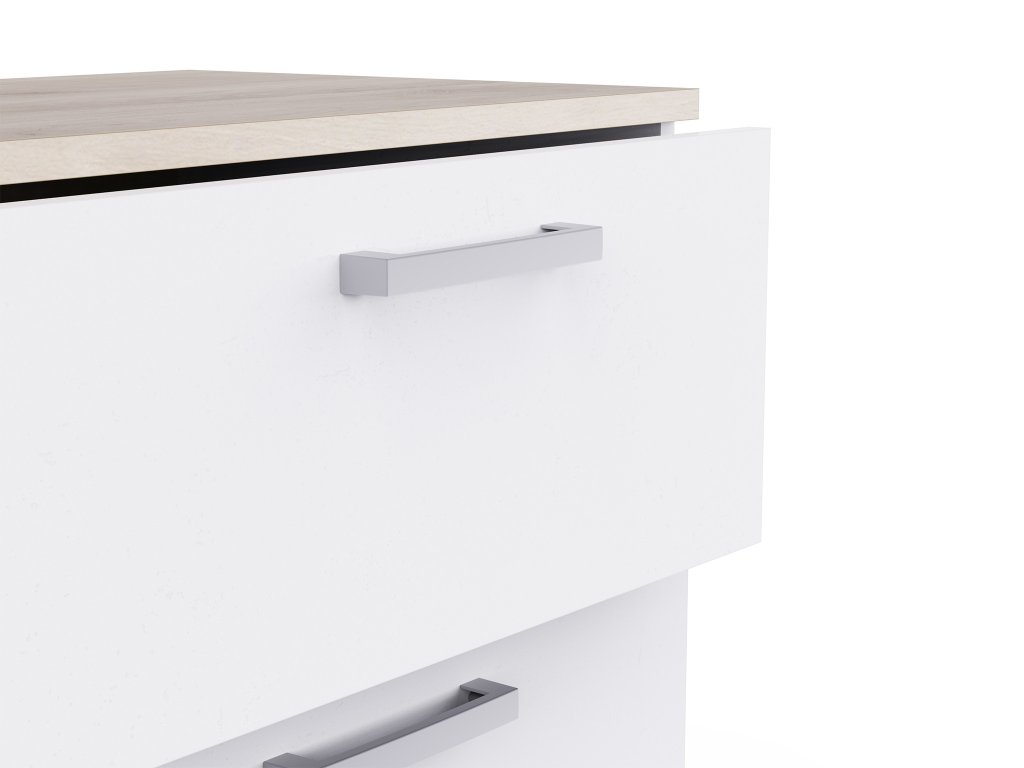 Biela farba opticky zväčšuje priestor a vnáša do miestnosti pocit sviežosti a poriadku. Komoda ponúka praktické zásuvky, ktoré pojmú všetko potrebné, a zároveň pôsobí elegantne a ľahko.