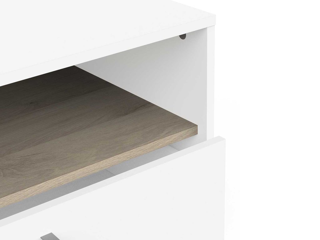 Komoda Watson v bielej farbe je elegantným a funkčným doplnkom každej spálne či obývačky. Jej čisté línie a svetlý povrch vnášajú do interiéru pocit sviežosti a priestoru. Biely dekor pôsobí nadčasovo a ľahko sa kombinuje s rôznymi štýlmi zariadenia, čím vytvára harmonický a vyvážený celok.