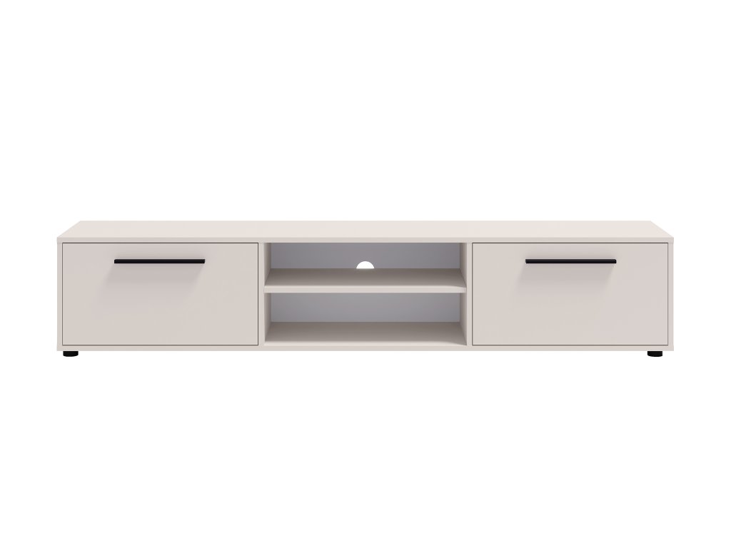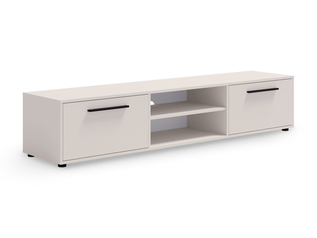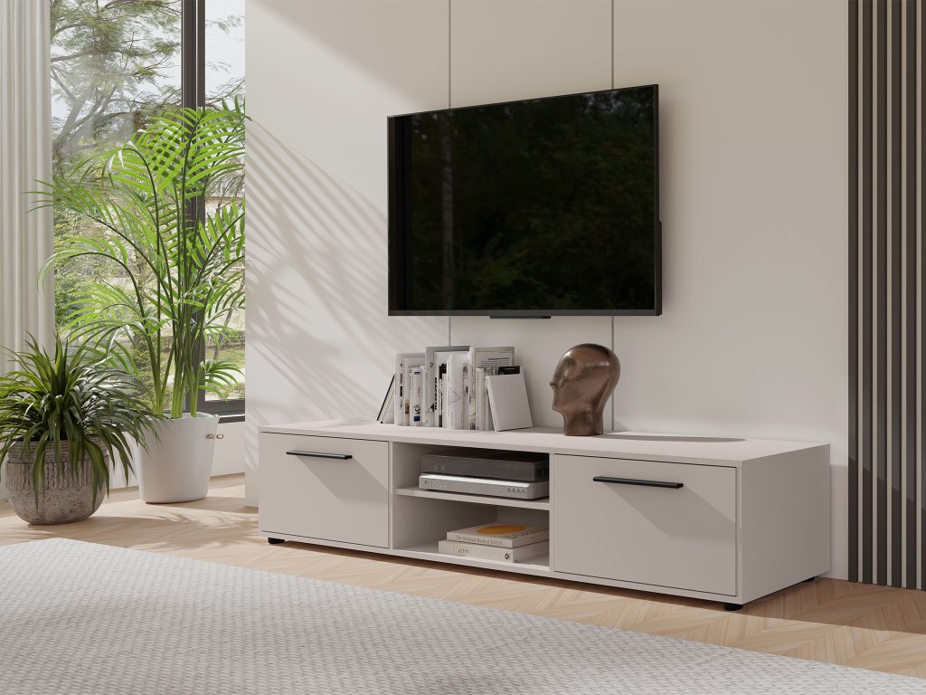 Prineste do svojho interiéru kombináciu štýlu a praktickosti s TV stolíkom Maxione v jemnom kašmírovom odtieni a šírkou 190 cm. Stolík nie je len podstavec pod televízor, ale aj dizajnový prvok, ktorý dodá obývačke alebo spálni moderný nádych a udrží priestor prehľadný a uprataný. Bočné skrinky s výklopnými dvierkami a otvorená polica poskytujú dostatok miesta na multimediálne zariadenia, ovládače, herné konzoly či dekorácie, takže každý predmet má svoje miesto a miestnosť pôsobí organizovane a útulne.