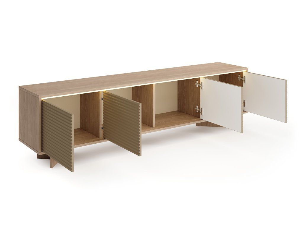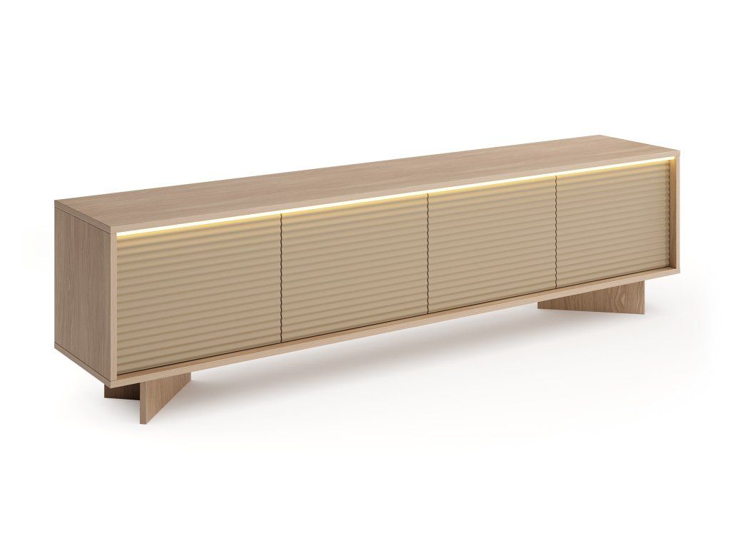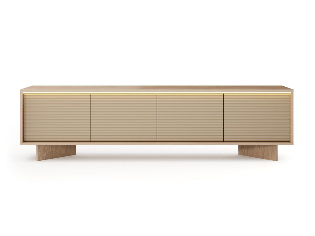 Praktický a štýlový TV stolík Semira prináša do interiéru moderný vzhľad s dôrazom na funkčnosť. Predné plochy s jemným ryhovaním MDF dopĺňajú čisté línie stolíka a vizuálnu ľahkosť. Štyri uzatvárateľné skrinky poskytujú dostatočný úložný priestor pre elektroniku, mediálne doplnky či dekorácie. Moderný systém push-to-open umožňuje pohodlný prístup bez nutnosti úchytiek a LED osvetlenie pod hornou doskou vytvára príjemnú a útulnú atmosféru obývacieho priestoru.