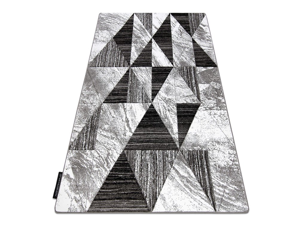 Obohaťte svoj domov elegantným kobercom Trigon so sivo-čiernym dizajnom. Tento koberec pridáva estetický pôvab, ale aj praktický prínos. Poskytuje teplý komfort pre vaše chodidlá a zlepšuje akustiku miestnosti, absorbuje zvuky a eliminuje ozvenu. Jeho trojrozmerný geometrický vzor vytvára fascinujúci vizuálny efekt, čo robí z vášho interiéru jedinečné a štýlové miesto. Vyrobený je z 100% polypropylénu, čo znamená, že je odolný voči opotrebeniu a zvláda záťaž každodenného používania, zachovávajúc si pritom svoju prirodzenú eleganciu. Koberec Trigon je ideálnym doplnkom do dlhých chodieb, kuchyne alebo obývačky, čím pridáva do vášho domova nielen štýl, ale aj maximálne pohodlie.