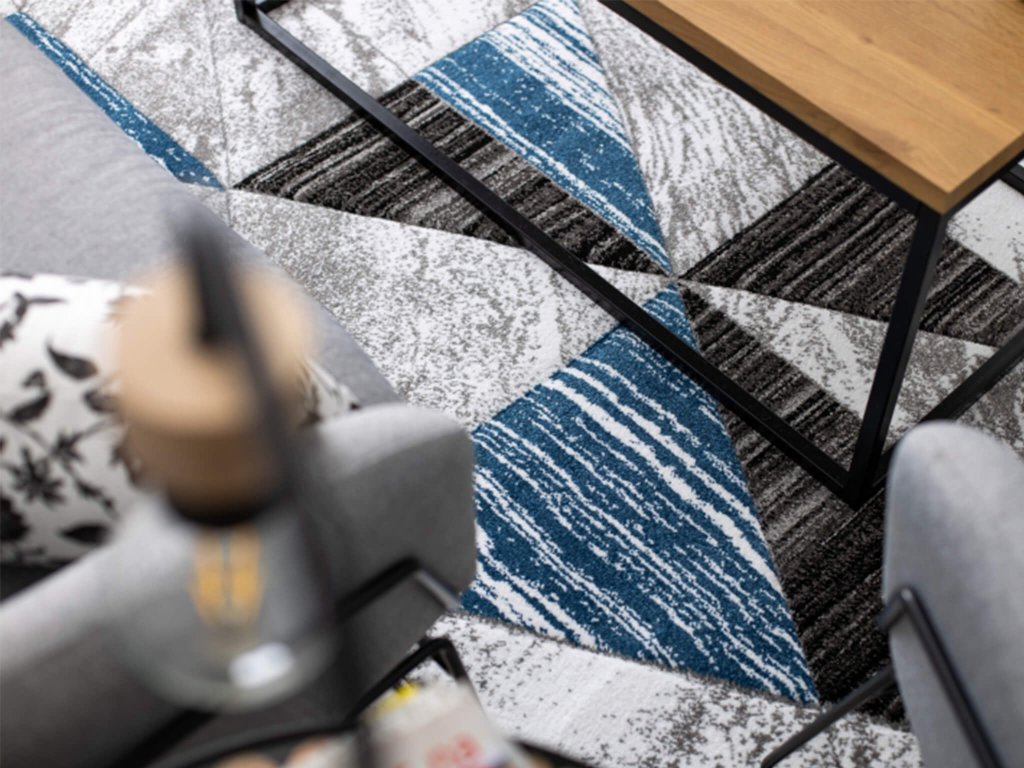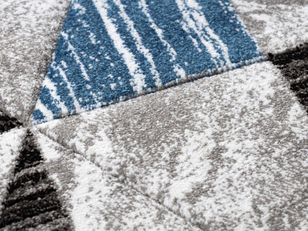Sivo-modrý geometrický koberec Nano