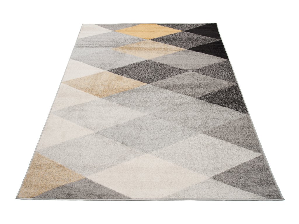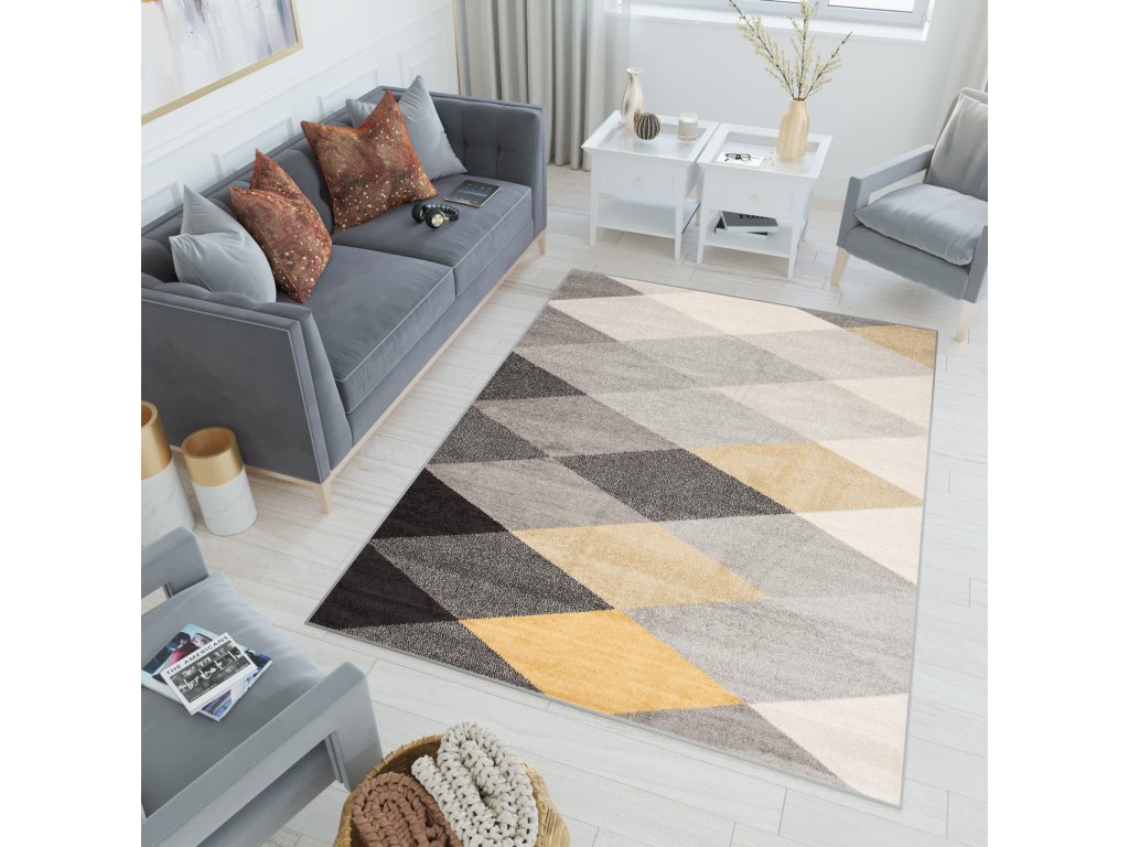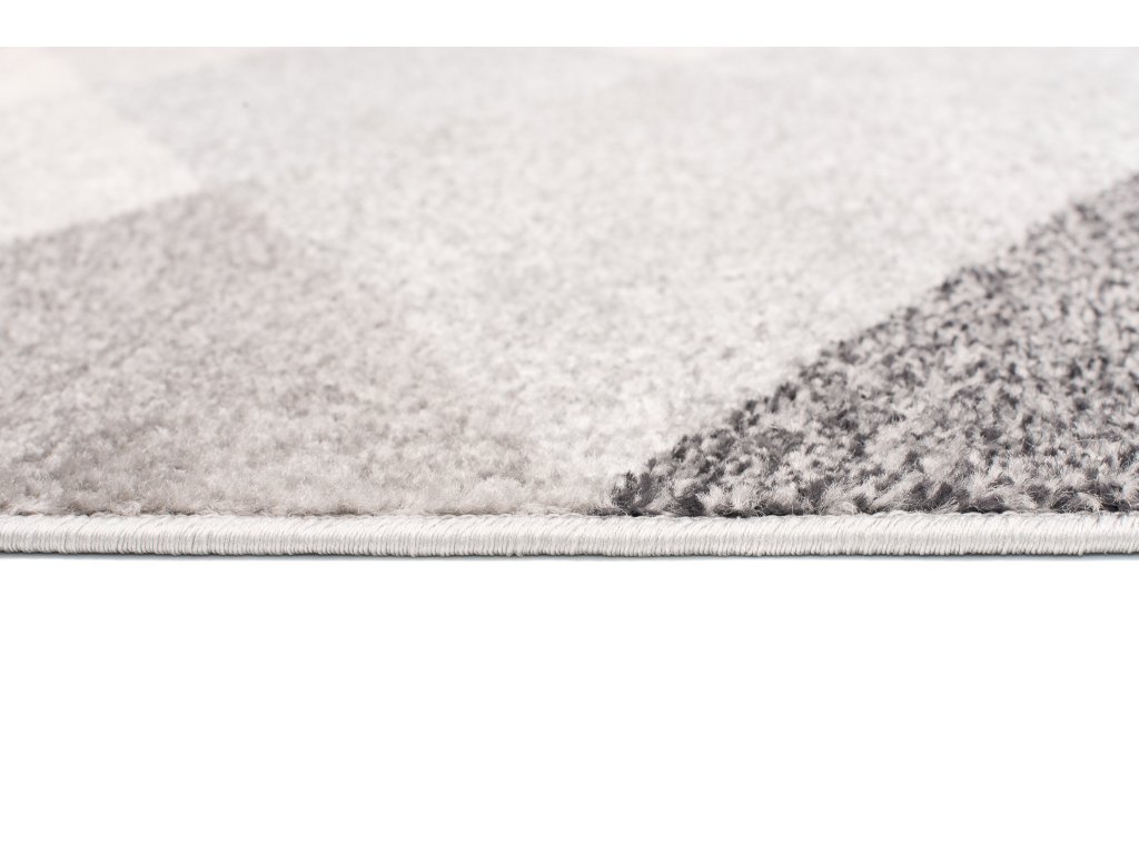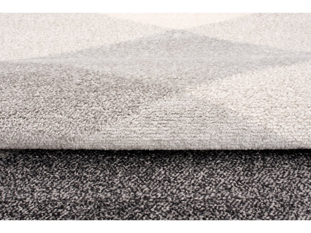 Mäkký a pružný koberec s moderným geometrickým vzorom.